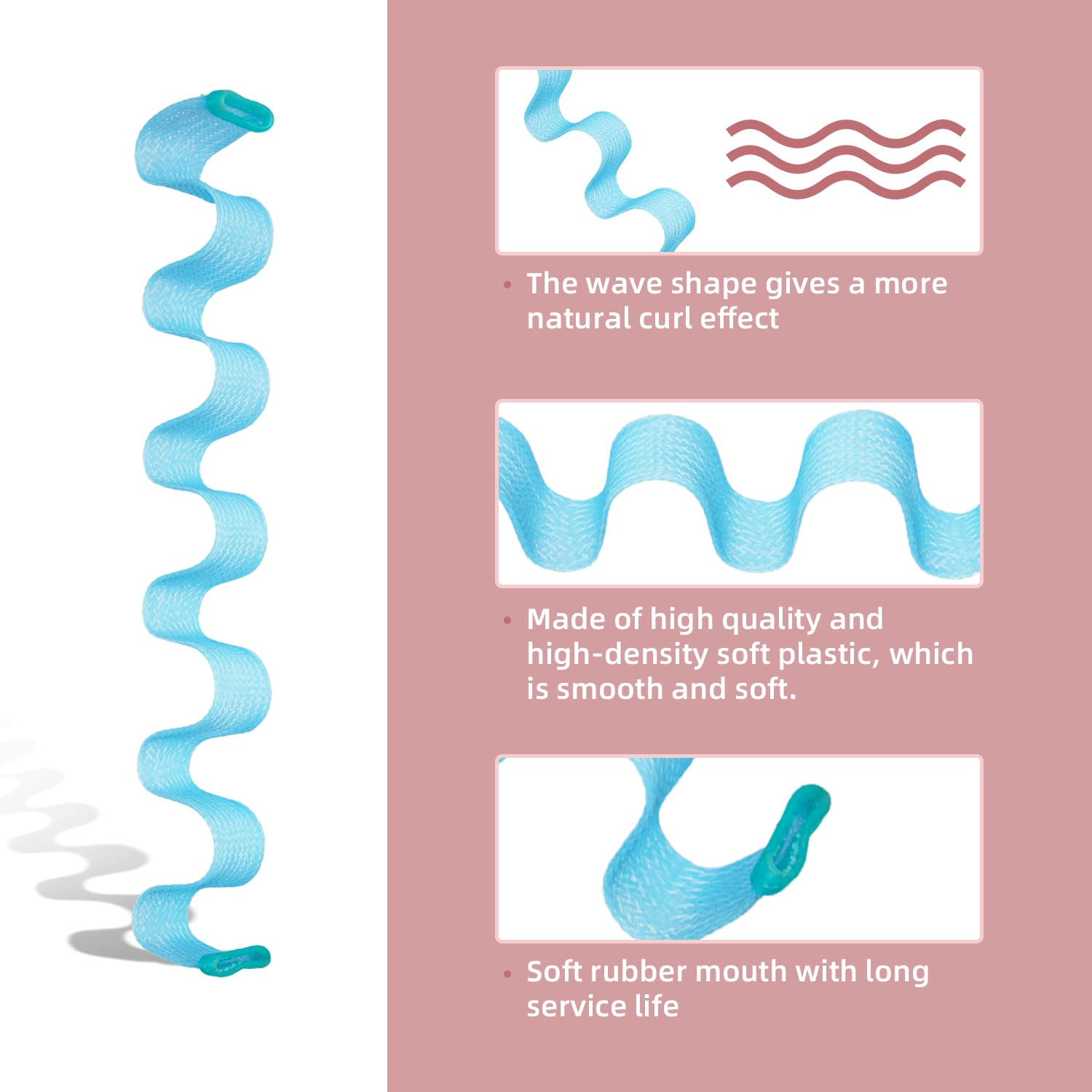 - Package includes: 30pcs Wave style hair curlers and 30pcs spiral heatless curls, pink orange blue green yellow and purple color, 2 sets of hair hooks (blue + pink). Package includes: 30pcs Wave style hair curlers and 30pcs spiral heatless curls, pink orange blue green yellow and purple color, 2 sets of hair hooks (blue + pink).