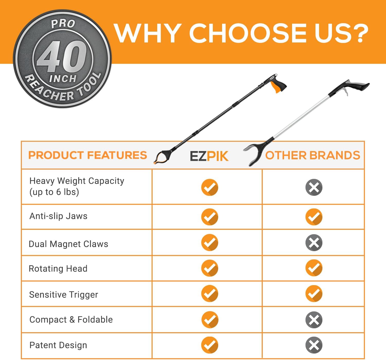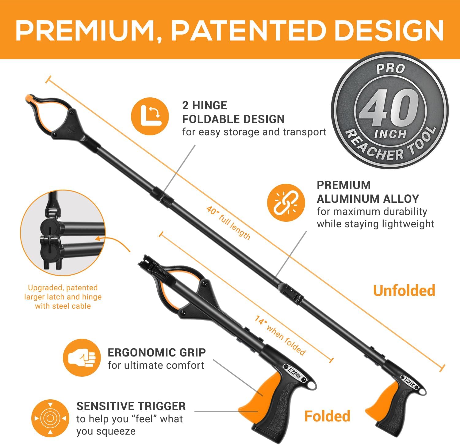 EZPIK Pro 40" Extended Grabber Reacher Tool for Elderly, Trash Hand Grabber Pickup Sticks for Seniors, Telescoping Extension Gripper Claw Pickup Tool, Hand Extension Magnetic Folding Tongs