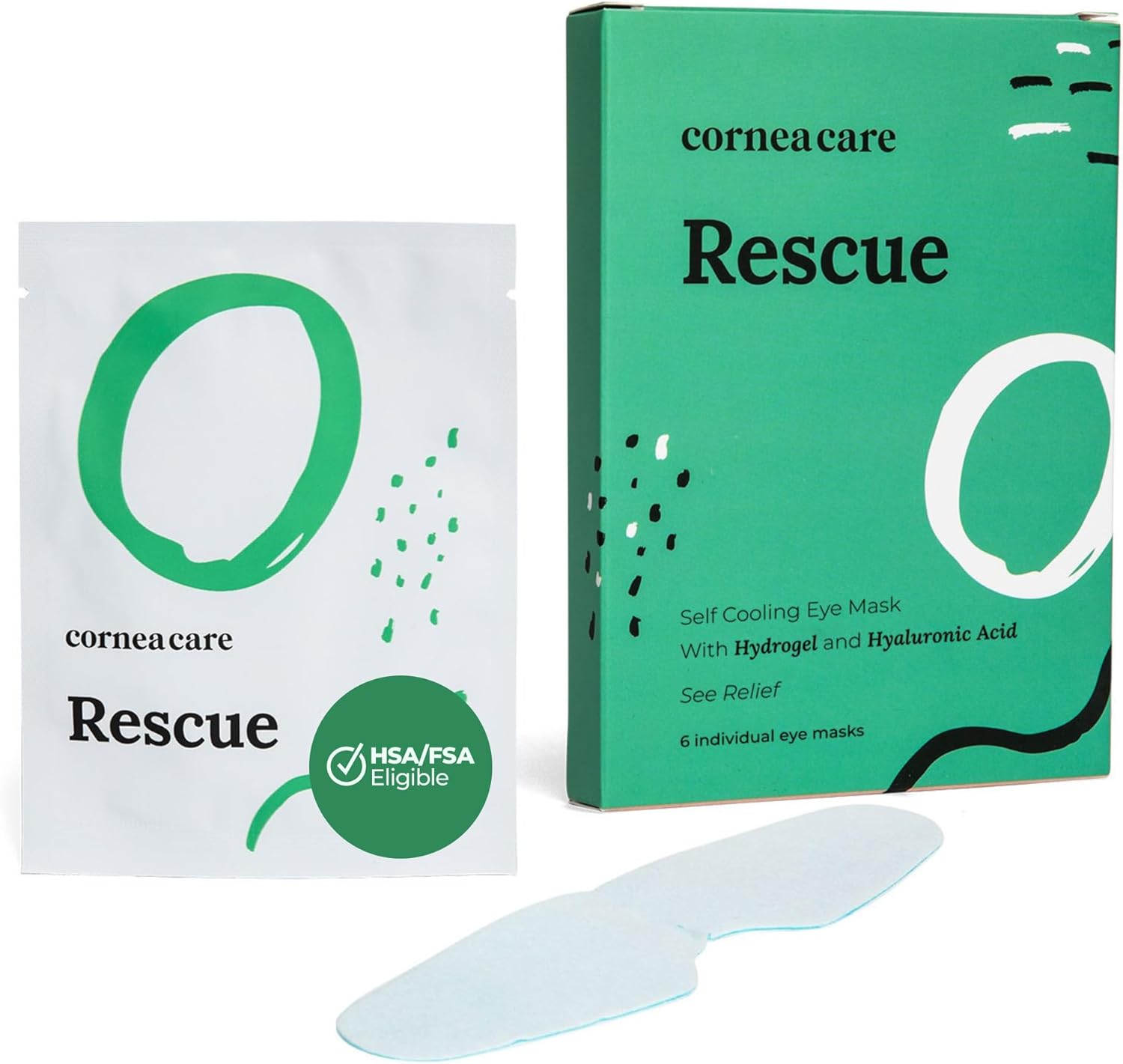 Rescue: Hydrogel Self Cooling Compress | Cold Eye Masks for Puffy Eyes | Self Cooling Eye Compress for Fast Relief | Travel Ready | 6 Count