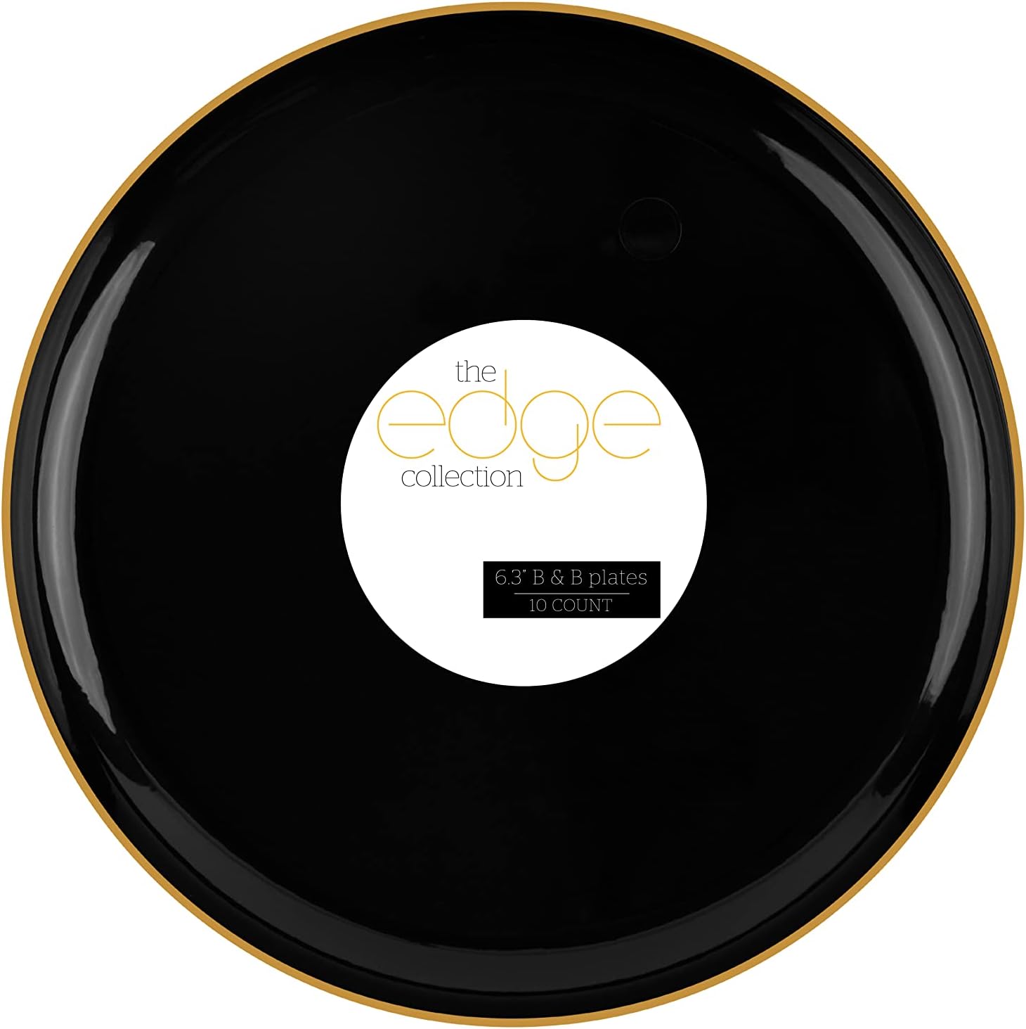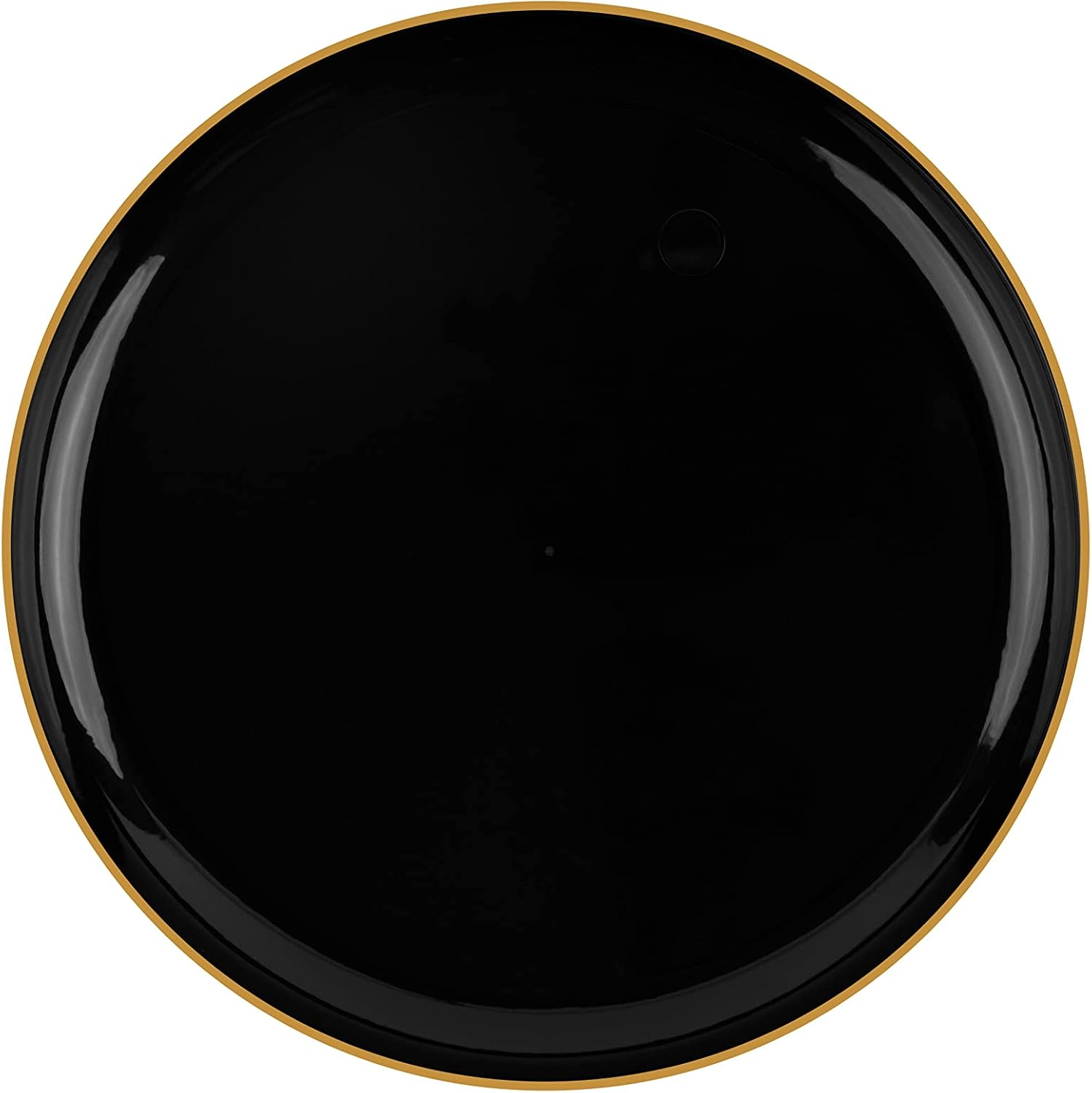 PLASTICPRO [30 pack 6.3 Plastic Party Plates Edge Collection Premium heavyweight Elegant Disposable Tableware Dishes (Black With Gold Rim