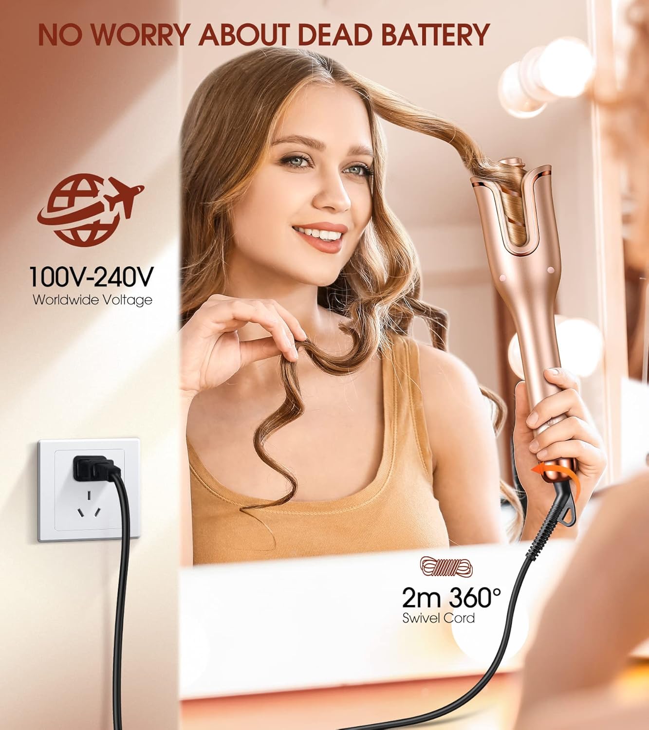 - 【No Dead Battery & 30mins Auto Shut-off】Upon market research, we found that 95% of cordless curling irons cannot maintain a complete curl due to weak batteries. There is no need to worry about the dead battery because we specially design 2m swivel power cord for this automatic hair curler. This hair curling wand will automatically shut off if no operation detected within 30mins, maximum your safety, give you a stress-free operation. Please contact us if need any support.