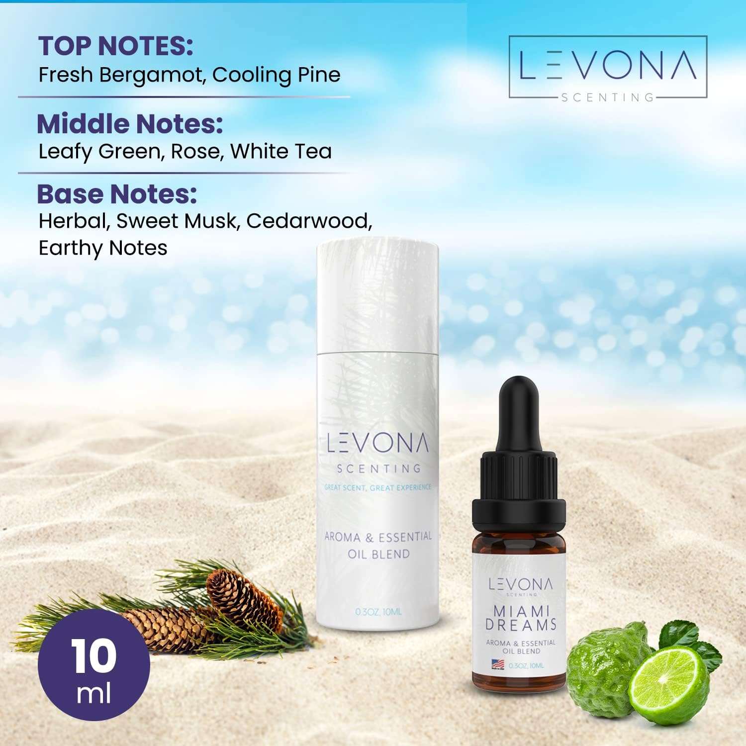 - REFRESHING BLENDS YOU’LL LOVE: An enticing blend of bergamot, pine, leafy greens, and rose, with hints of white tea and musk, Miami Dreams brings a refreshing fragrance in perfect harmony. Transform your space with the vibrant essence of nature’s fresh aromas. Packaged in a 10ml bottle of bliss.