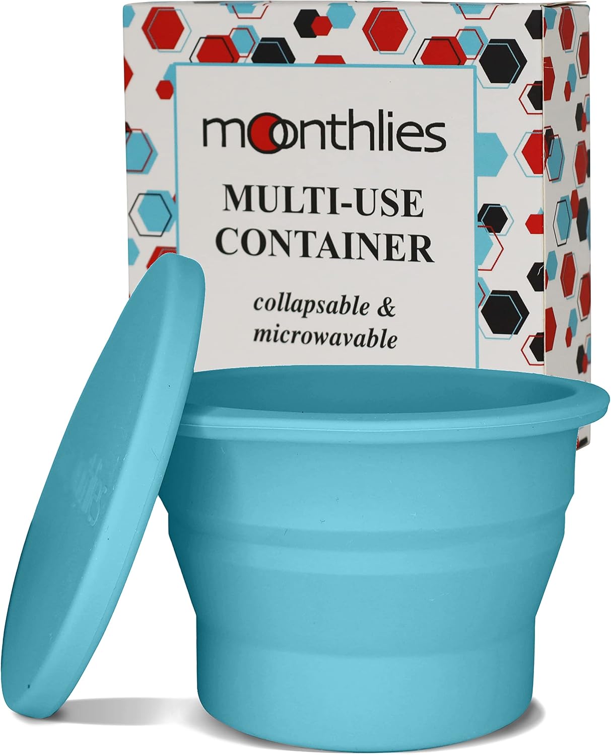 - STERILIZE - Fill container with water, boil water in microwave for 2-3 minutes, remove from microwave and insert your menstrual cup/disc and seal lid. Leave cup or disc in sealed container for 5 minutes to finis the sterilizing process.