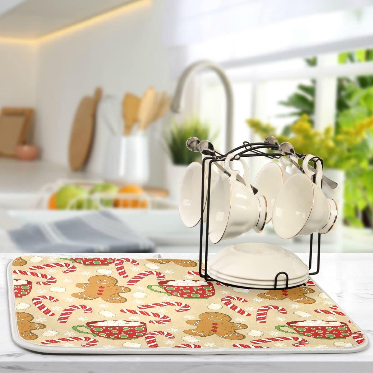 Christmas Gingerbread Man Candy Cane Dish Drying Mat for Kitchen Winter Snow Snowflake Snowman Xmas Microfiber Drying Mats Absorbent Reversible Dish Pad Large Dish Draining Mat 18x24 inch