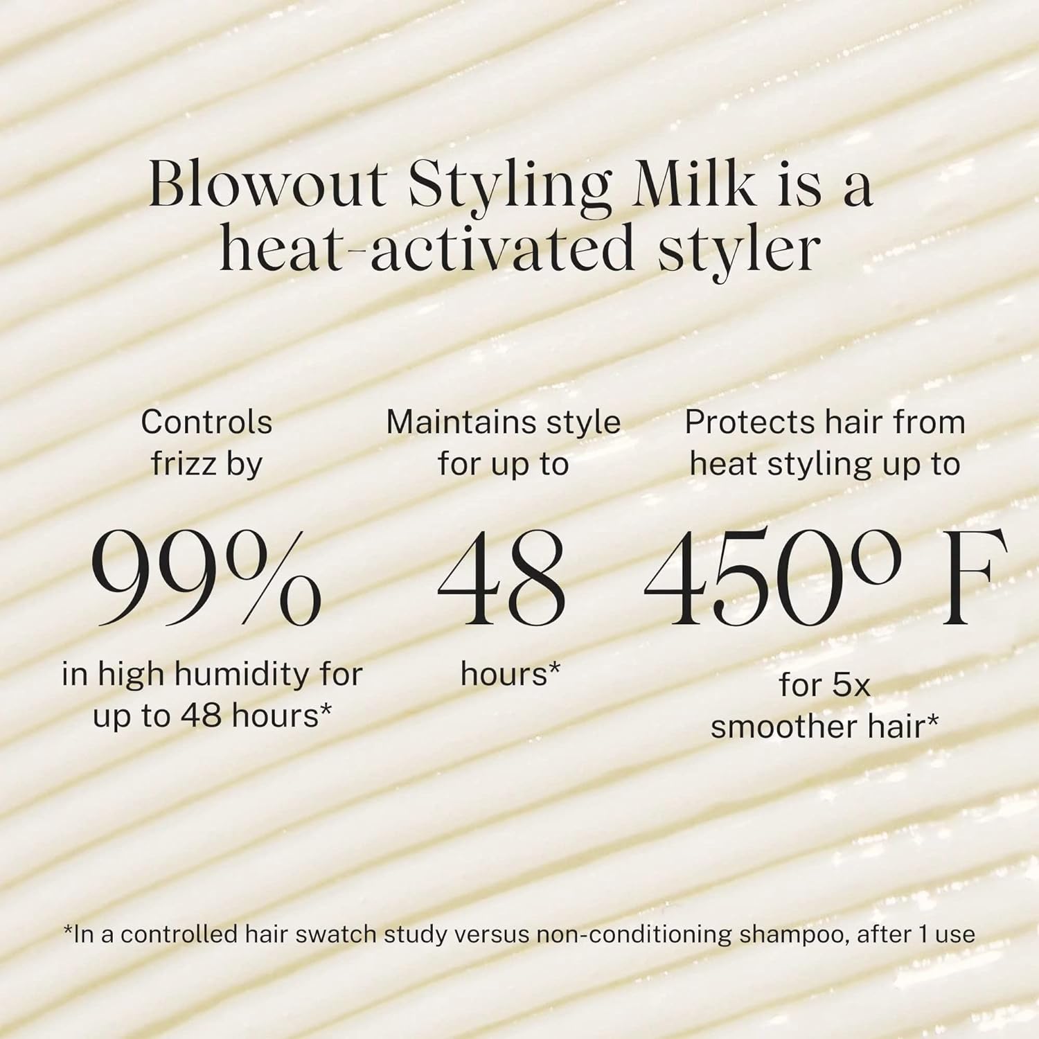 - Key Benefits - Bring the heat for a total style transformation. This heat-activated, smoothing styler lets you achieve a smooth, soft, salon-level blowout. Blowout Milk is your ultimate defense from heat damage and humidity, for style that lasts all day long.
