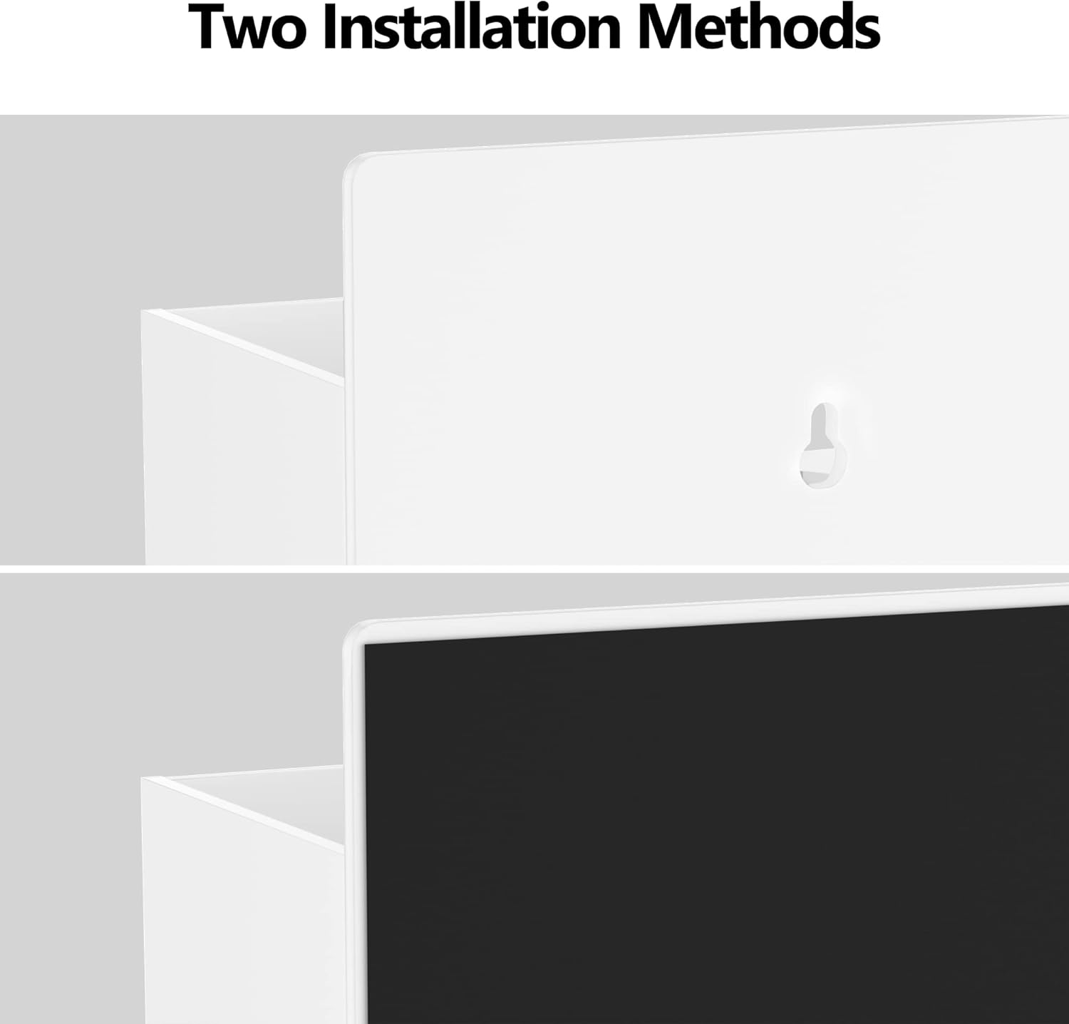 - PATENT PENDING: 𝗣𝗔𝗧𝗘𝗡𝗧 𝗣𝗘𝗡𝗗𝗜𝗡𝗚. This 2-tier design ( Patent Pending ) can ensure that the holes in the bottom tray are just right for holding the tips of standard dry erase markers in place. If you don't want to install it on the wall, it can also be placed on the table top.