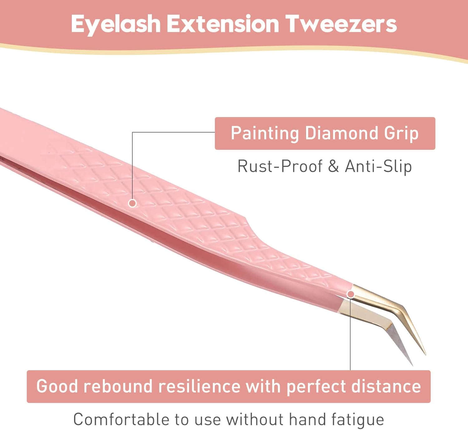 Ms.Queen 45 Degree Tweezers for Lash Extensions,Precision Fiber Tip Eyelash Tweezers for Volume Eyelash Extensions