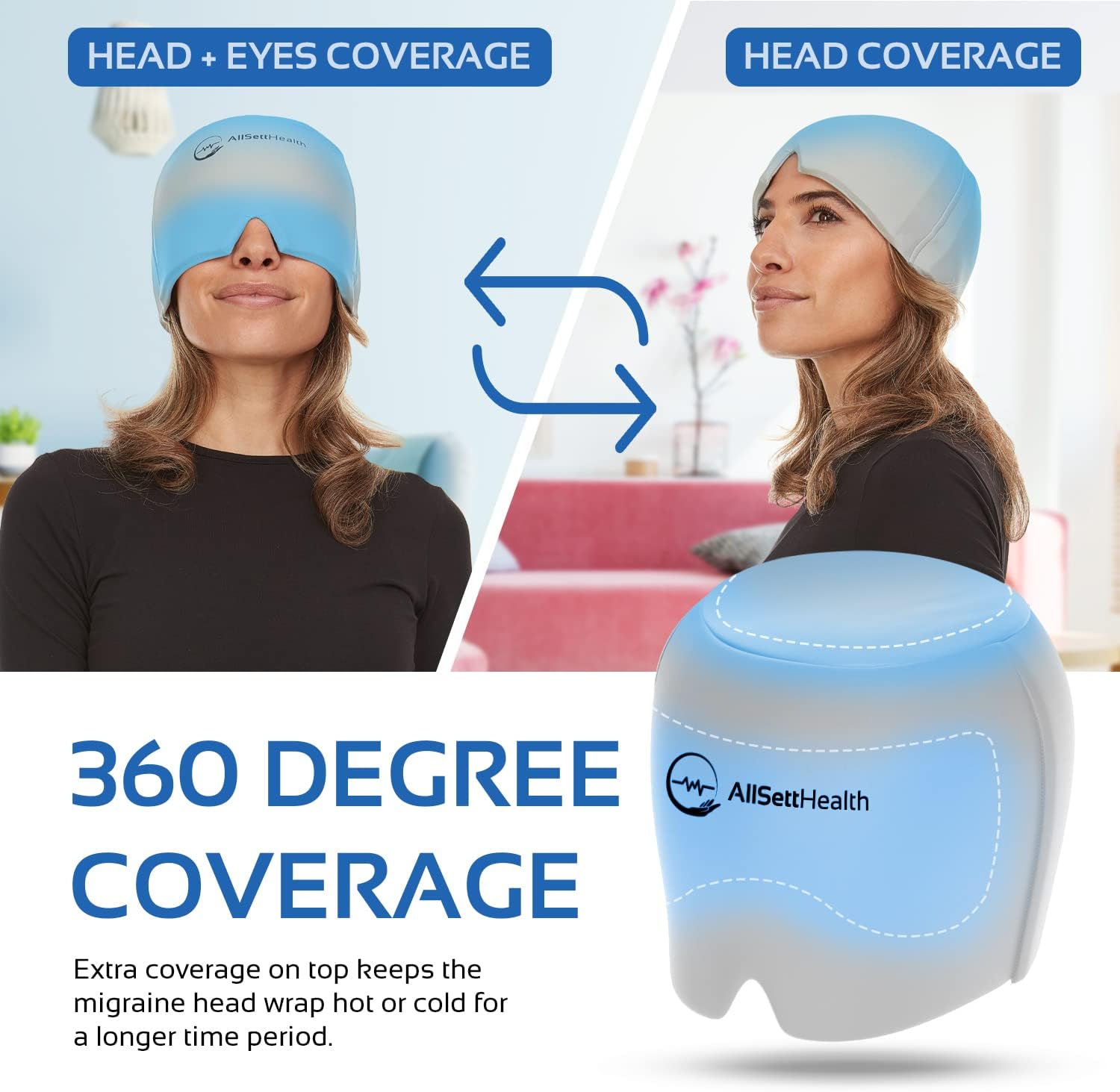 - Headache and Migraine Relief - Finally, natural drug free relief for headaches and migraines that actually works! This migraine ice head wrap offers 360 degrees of coverage to completely envelop your head in an icy cocoon of coolness and compression.