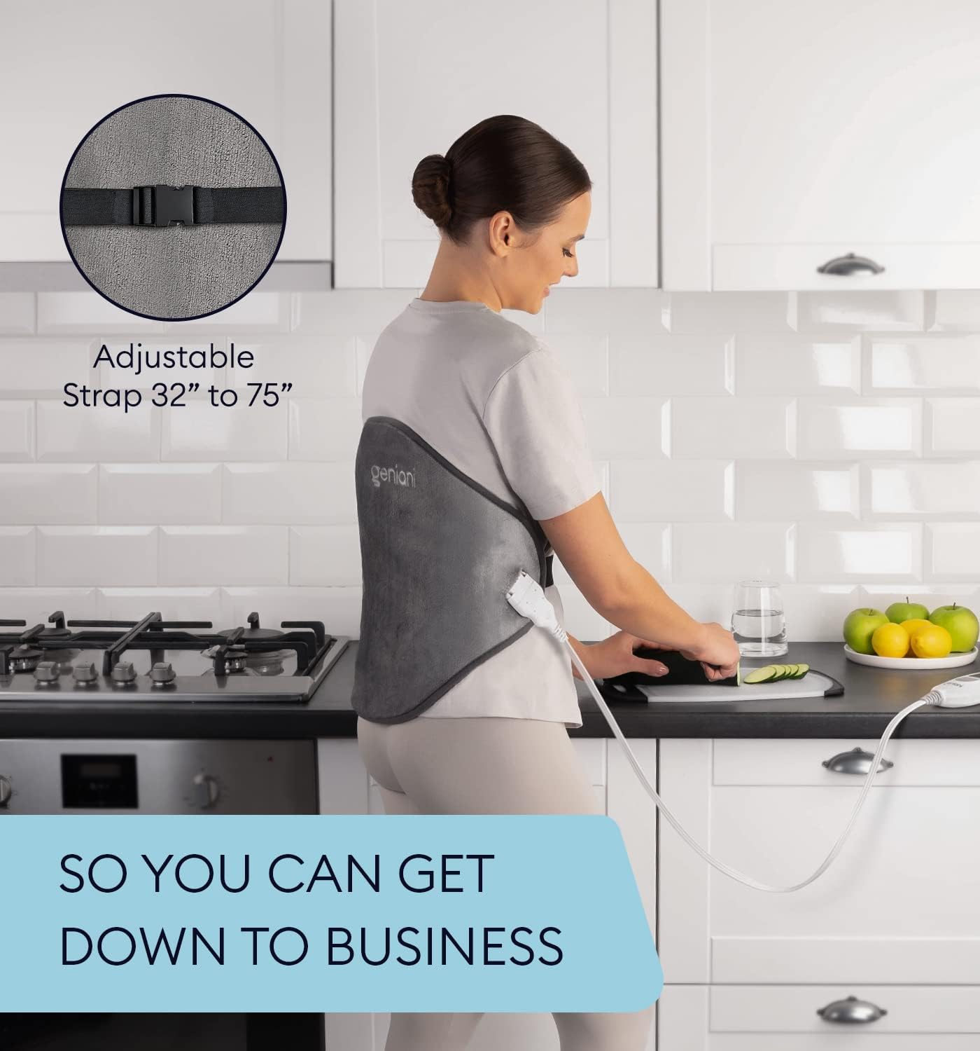GENIANI Electric Throw - XL Heating Pad for Back and Cramps Relief, 15"x24" Electric Heat Pad with Auto Shut-Off, Adjustable Strap, Soft Fabric, Ideal for Lower Back & Stomach – Gift for Women & Men