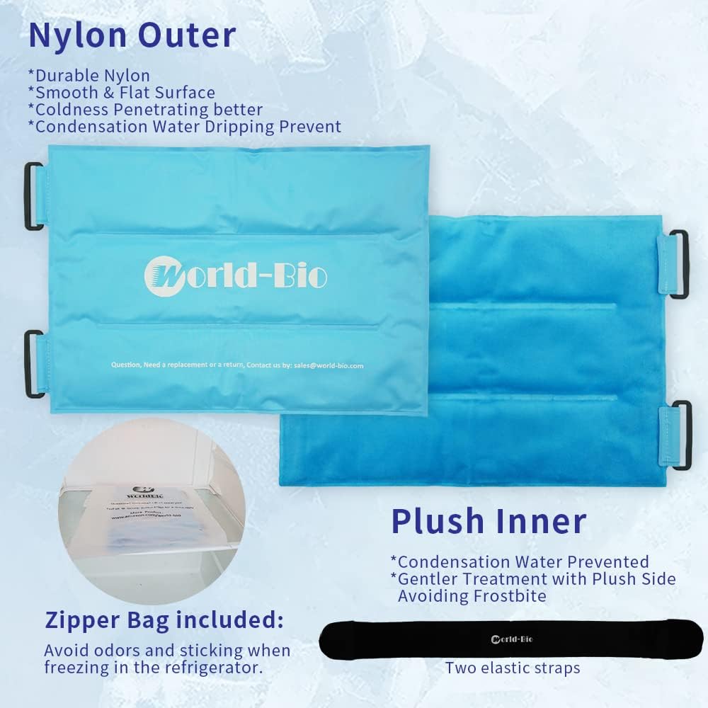 - *Flexible & Reusable Ice Pack for Knee - WORLD-BIO ice pack wrap for knee is able to remain flexible even after frozen to contour perfectly the knee and provides a satisfying and long-lasting cold therapy. Two indentations in the middle of the ice pack allow the gel to be divided equally in each area of the ice pad, to achieve the most comfortable wearing experience.