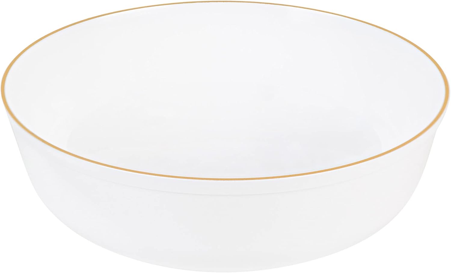 - [30 Pack Bowls] Edge Collection White with Gold Rim Plastic Party Bowls With Elegant Design Premium heavyweight Elegant Disposable Tableware Dishes