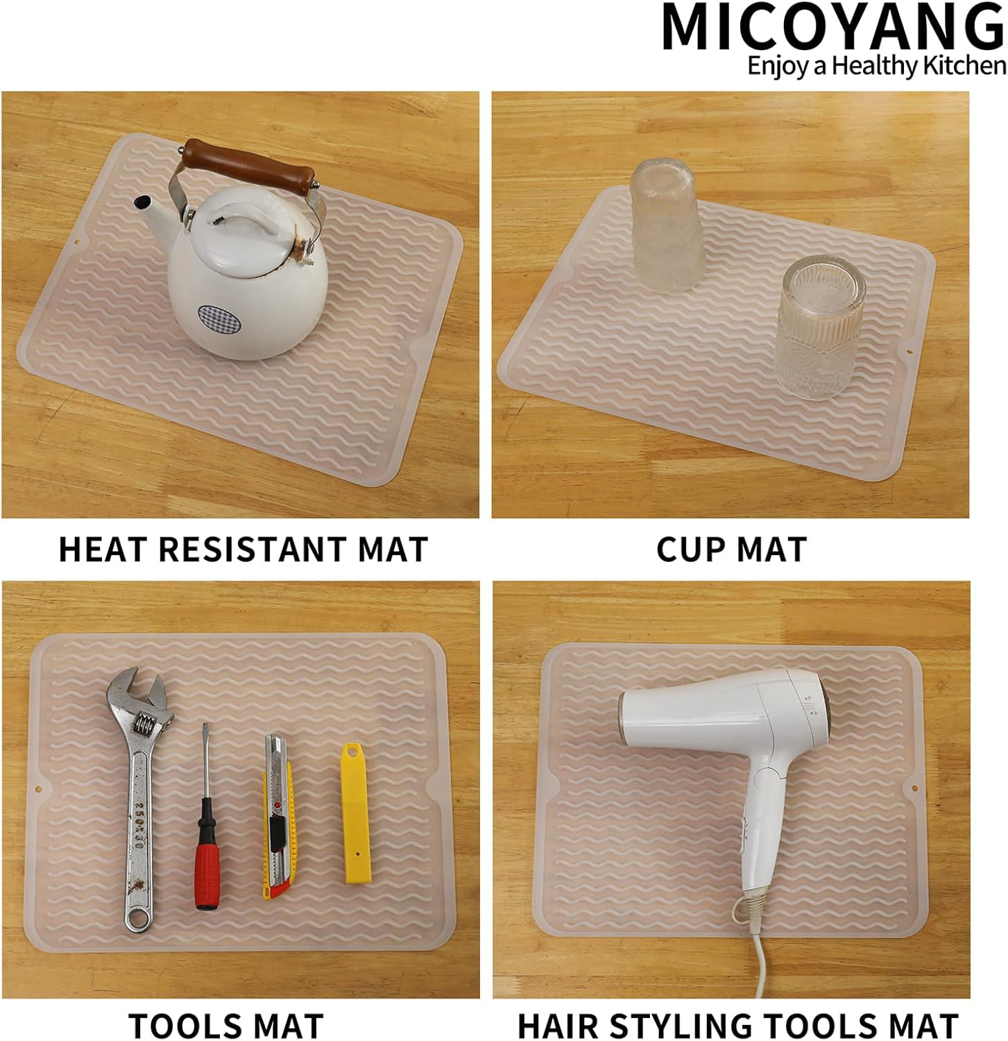 Silicone Dish Drying Mat for Multiple Usage,Easy clean,Eco-friendly,Heat-resistant Silicone Mat for Kitchen Counter or Sink,Refrigerator or drawer liner Translucent L 16 inches x 12 inches