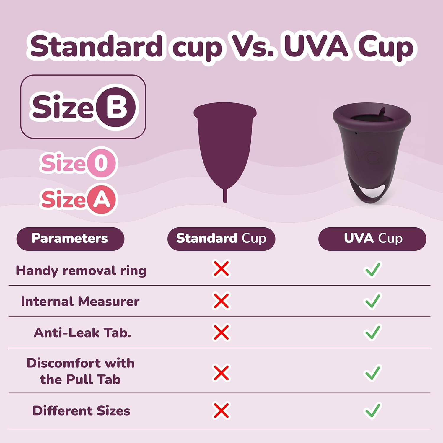 - Make the Eco-Friendly Switch with UVA: Choosing the UVA period cups means reducing your environmental footprint. With reusable silicone and a spill-proof cup, you're contributing to a cleaner planet, all while enjoying comfort and convenience.