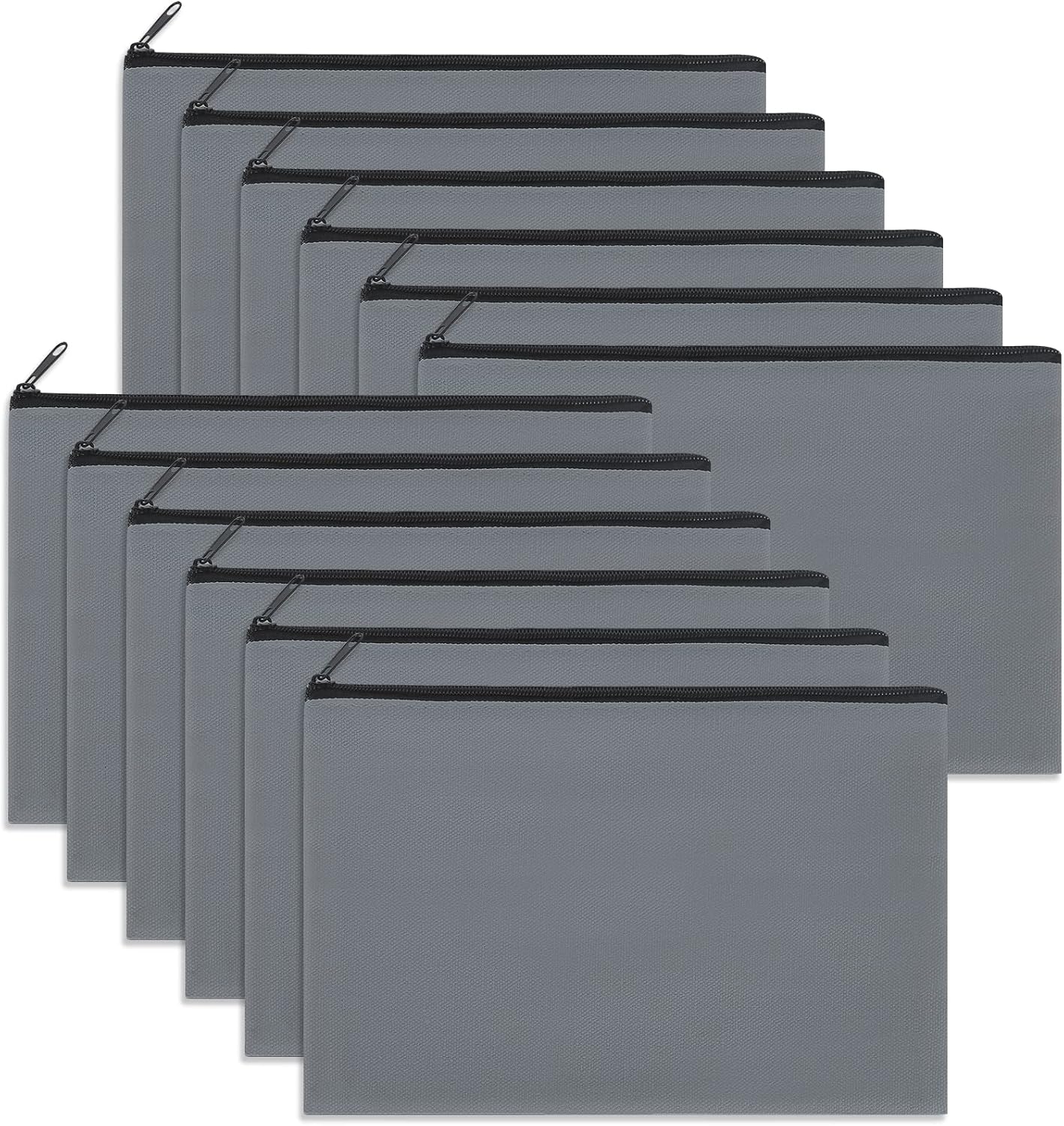 12 Pieces Cotton Canvas Makeup Bag, Multipurpose Cosmetic Bag with Zipper Travel Toiletry Pouch, Blank DIY Craft Bag (Grey, M)