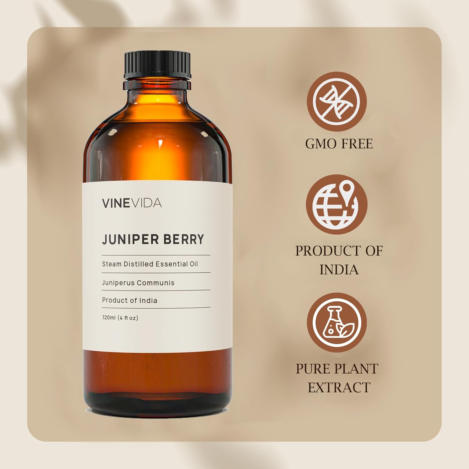 VINEVIDA Juniper Berry Essential Oil 4 oz - Undiluted Juniper Berry Oil 4 oz - Juniper Berry Candle Oil Scent - DIY Candle Scents for Candlemaking - Bulk Essential Oil for Soap Making Safe for Skin
