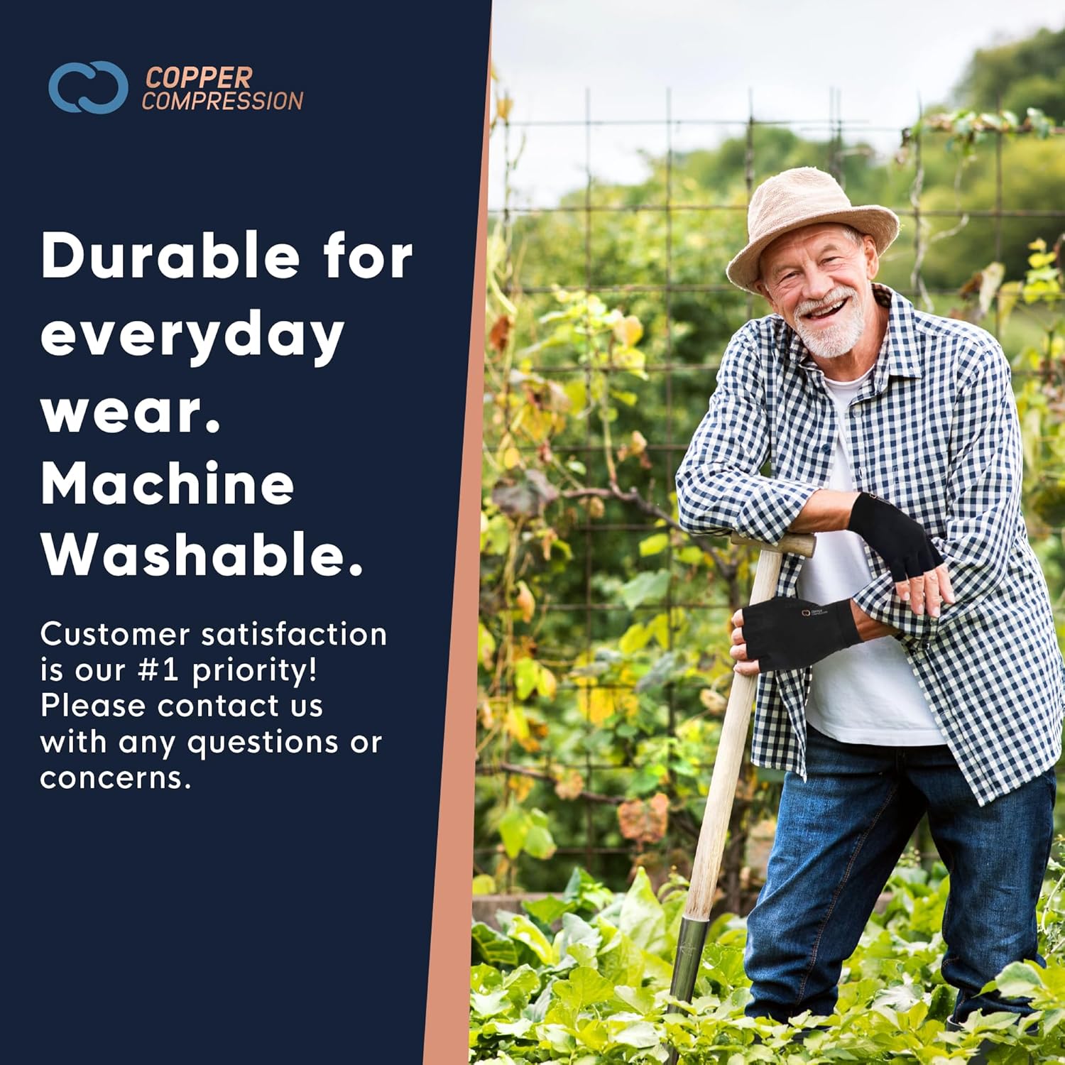 - COPPER INFUSED FIBERS. The material used in these gloves unites comfort with functionality. The 4-Way stretch construction, open finger design and non-slip palm grips allow you your full range of motion and grip, so there's no impact on your dexterity and fine motor skills. The moisture wicking fabric keeps palms dry, cool and comfortable. Get back to drawing, typing on the computer, crochet, quilting or knitting, and more with supported and pain free hands.