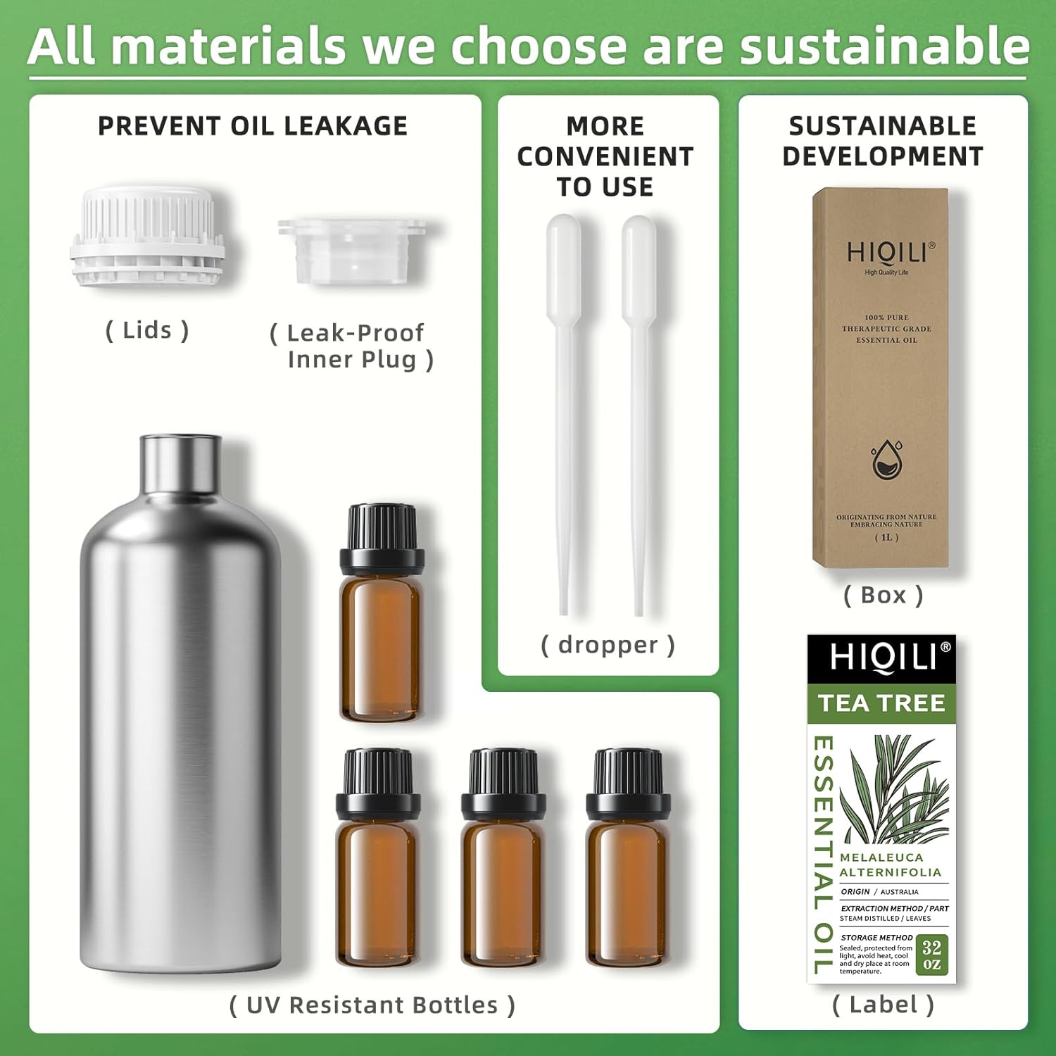 HIQILI Australian Tea Tree Essential Oil for Nail Repair, Hair Care, Add to Shampoo, Shower Gel, Foot Soak - 32 Fl Oz