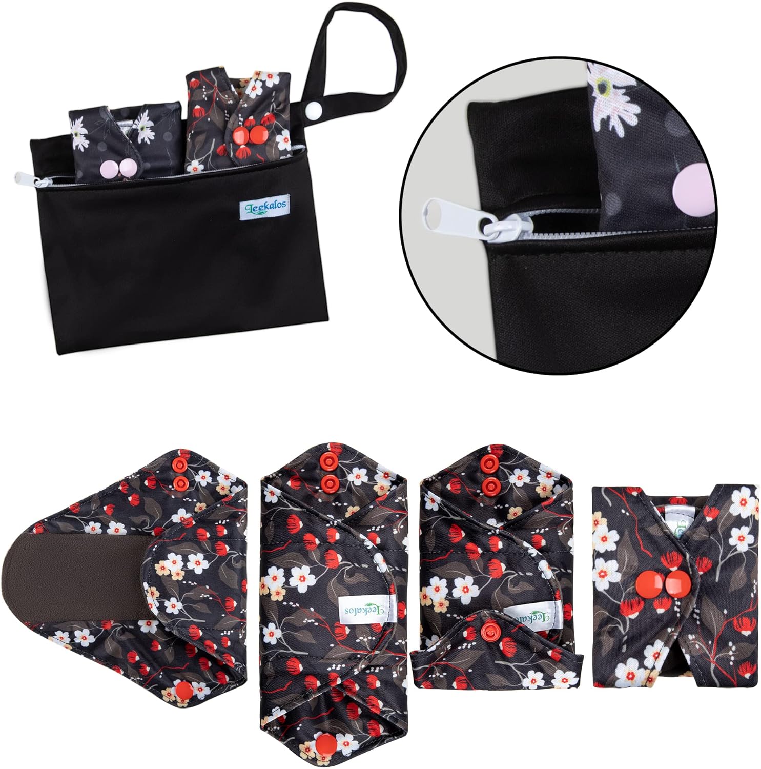 Leekalos Reusable Menstrual Pads - Bamboo Menstrual Cloth Pads | Light Incontinence Pads | Reusable Sanitary Pads - Pack of 6, 1 Cloth Mini Wet Bag