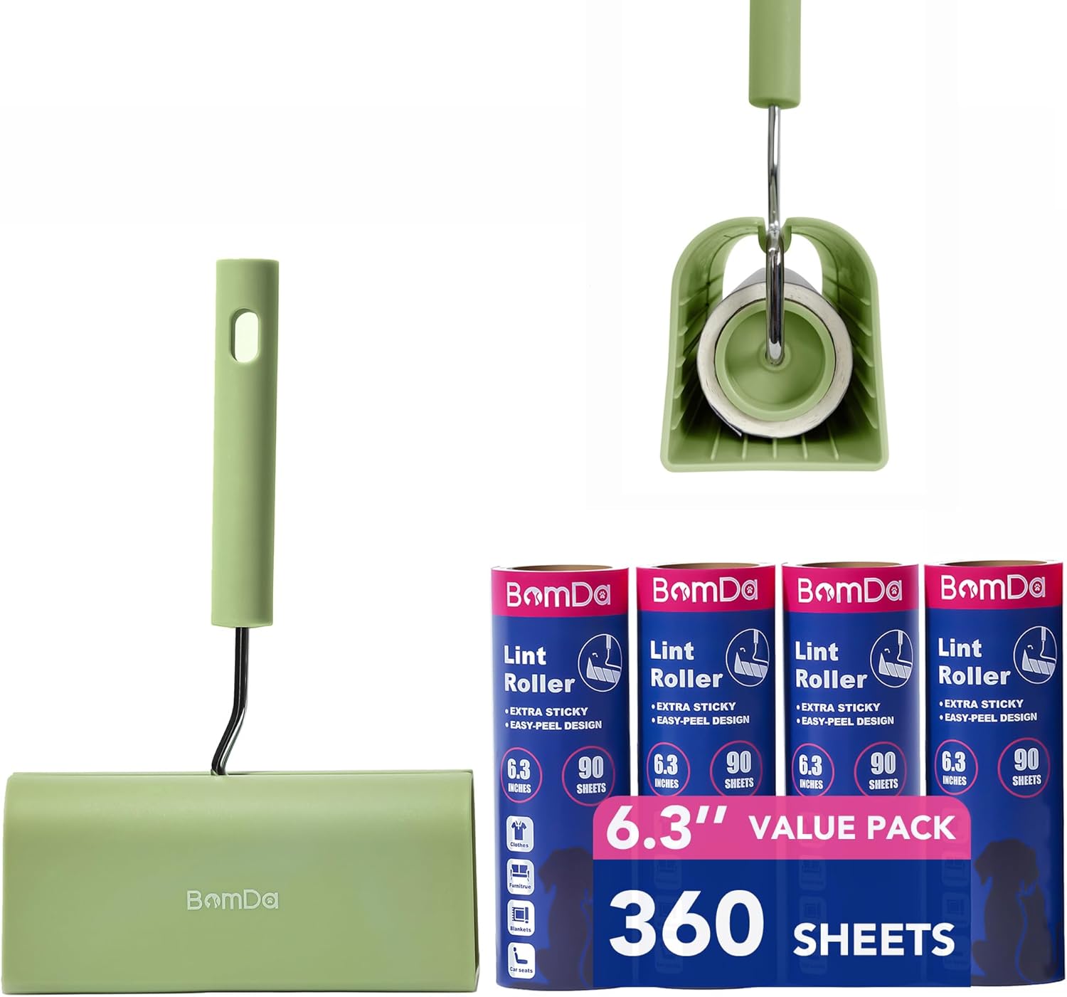 - MEGA VALUE SET : Your sticky roller includes 1 lint roller with a store cover and 4 pack of 90 Sheets refills for a total of 360 sheets , 6.3inch/16cm Width.