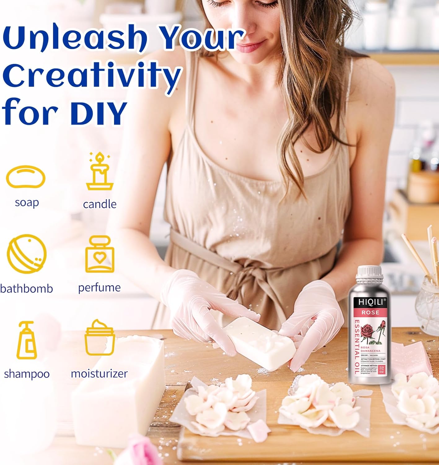 - DIY: Add rose essential oil to candles, aromatherapy lamps, conditioners, shampoos, massage oils, diffusers, cleansers, sprays, laundry detergents, cleansers, body lotions, creams, serums, bath salts, perfumes, soaps
