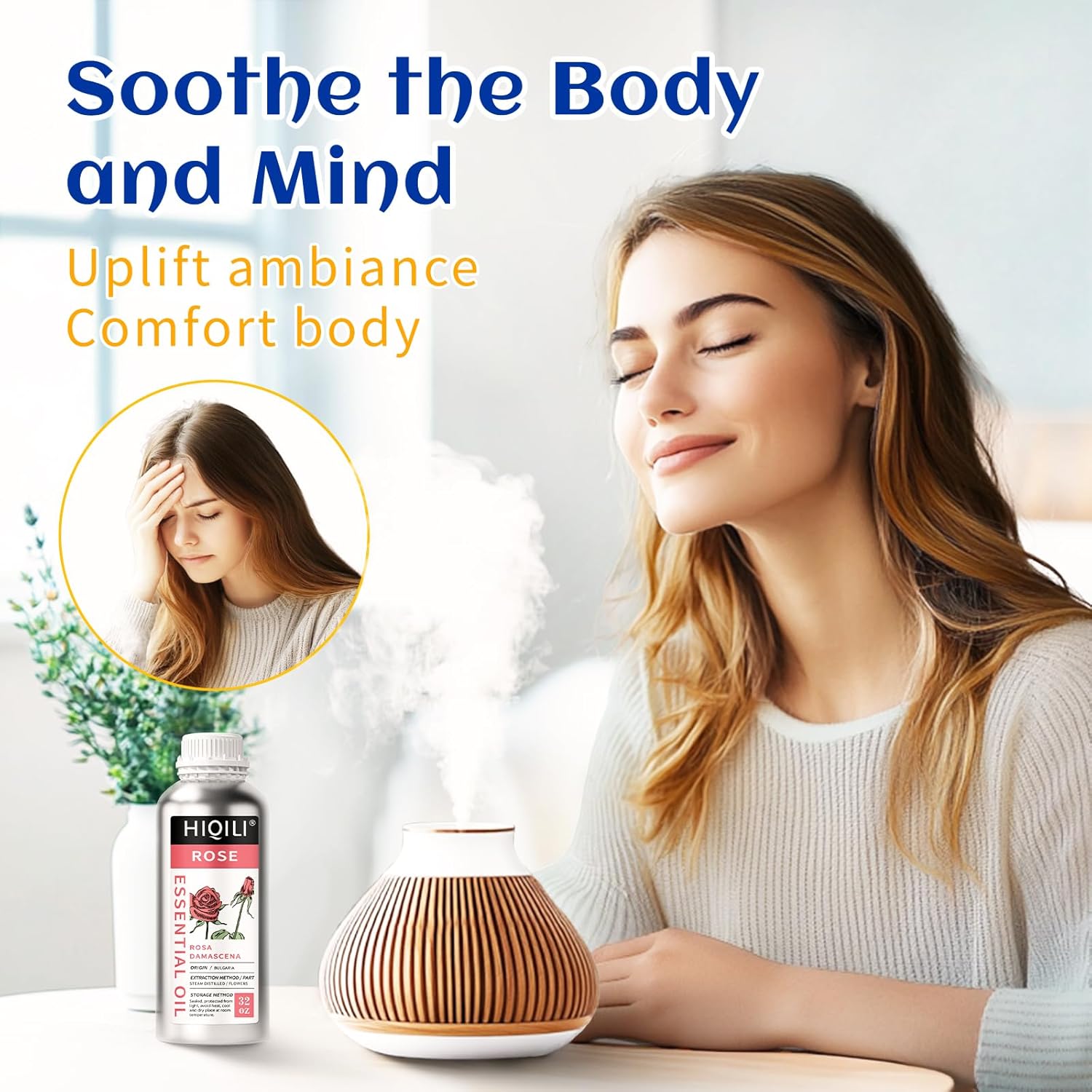HIQILI 32 Fl Oz Rose Essential Oil, Huge Value Size Undiluted Rose Oil for Face, Skin, Diffuser, Hair