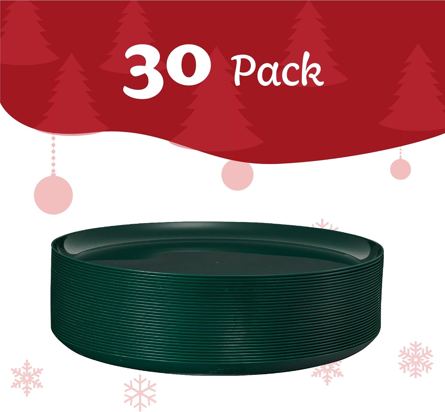 PLASTICPRO [30 Pack 10.7'' Christmass Green Plastic Party Plates Edge Collection Premium heavyweight Elegant Disposable Tableware Dishes