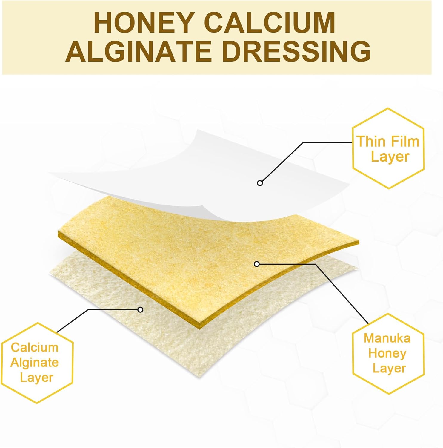 - 【Manuka Honey Calcium Alginate Dressing】The honey alginate dressing is made with natural Manuka honey from New Zealand and calcium alginate from seaweed, designed for wound care. This natural and safe choice is free from harsh chemicals, making it ideal for sensitive skin.