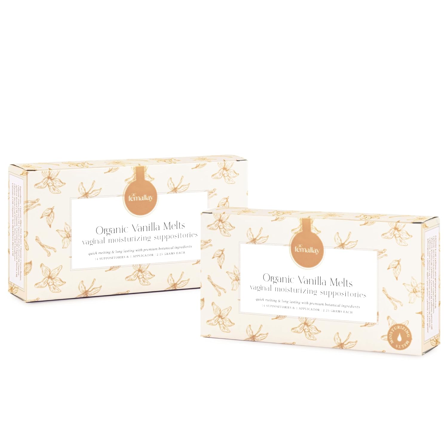 Femallay Organic Vaginal Moisturizing Suppositories – Vanilla 2 Pack – 100% Natural Relief for Dryness, Odor & Daily Feminine Discomfort – 14 Count + Applicator