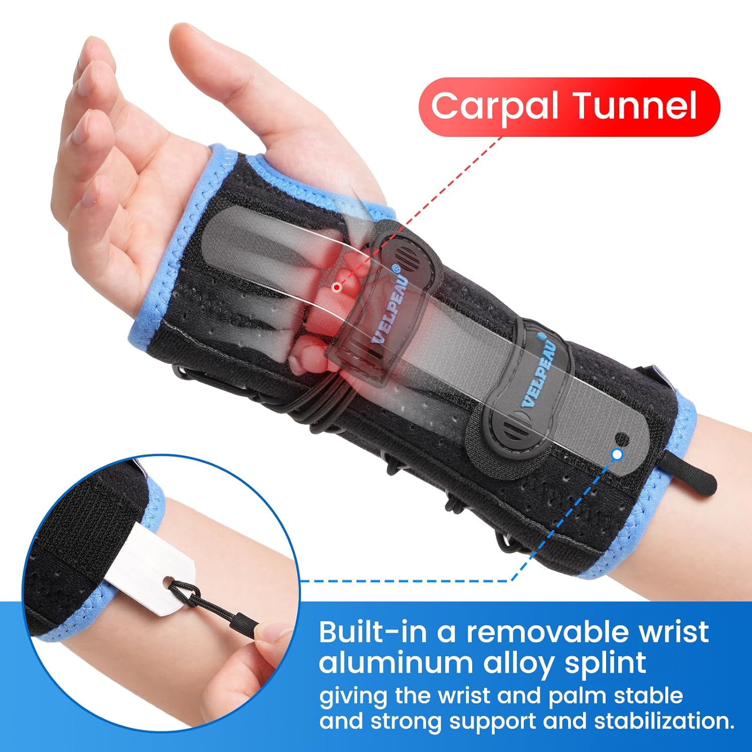 Velpeau Wrist Brace for Carpal Tunnel, Adjustable Elastic Tension Cords with Splints, Night Wrist Support for Arthritis, Tendonitis, Sprain, Injuries, Wrist Pain Relief Women and Men (Right Hand, S)