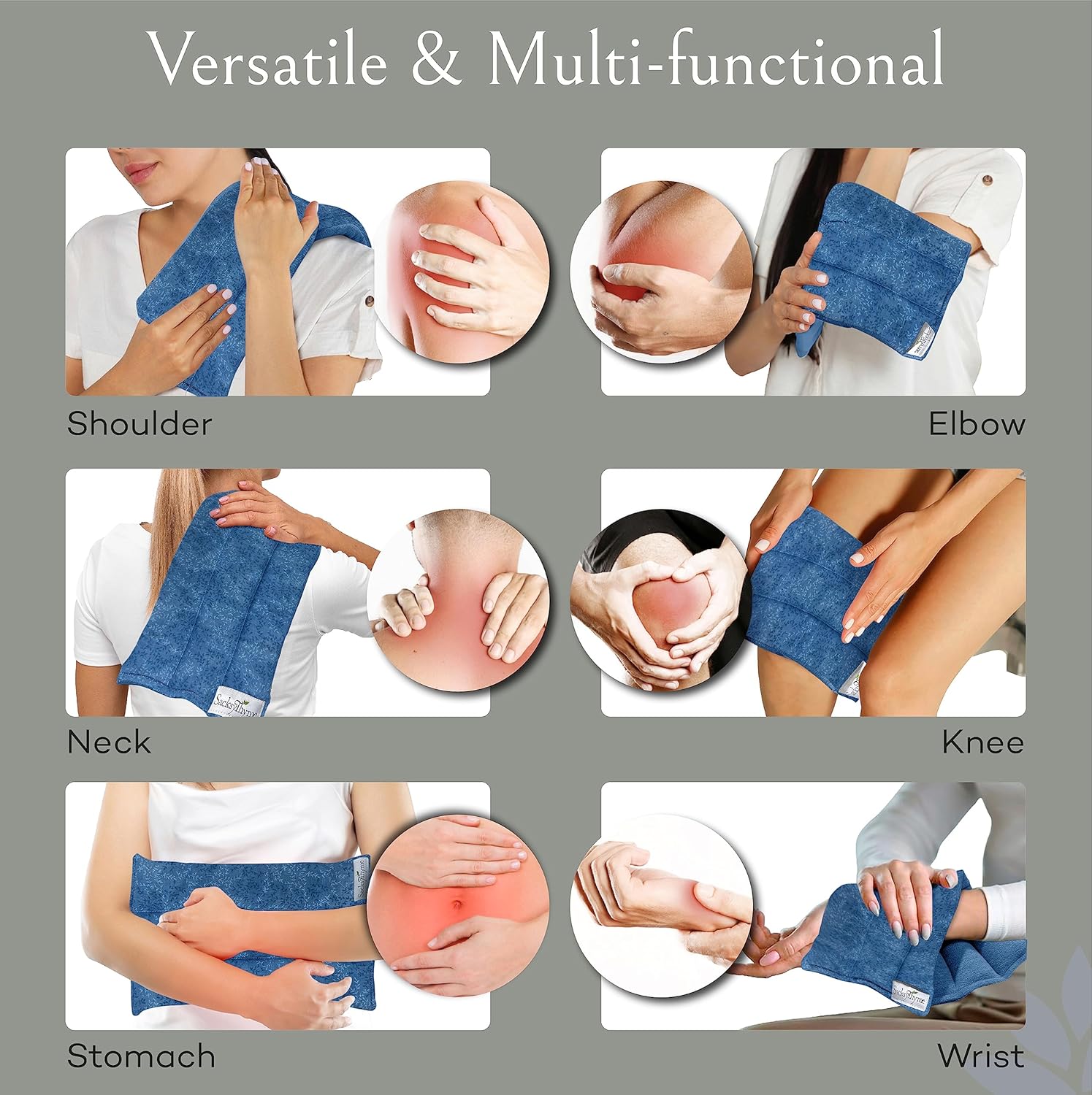 - HOW TO USE: Sacksy Thyme heating pad can be used to help with back, neck, menstrual cramps, leg, stomach, body, shoulder, joint aches and more. Simply heat in the microwave for 90 seconds until it feels hot to the touch. If more heat is needed add 30 seconds. Do not microwave this heat bag for more than 2 minutes per use. Do not reheat until the sack is completely cooled to room temperature. Microwave heating strengths vary therefore always test for hot spots and temperature before using.