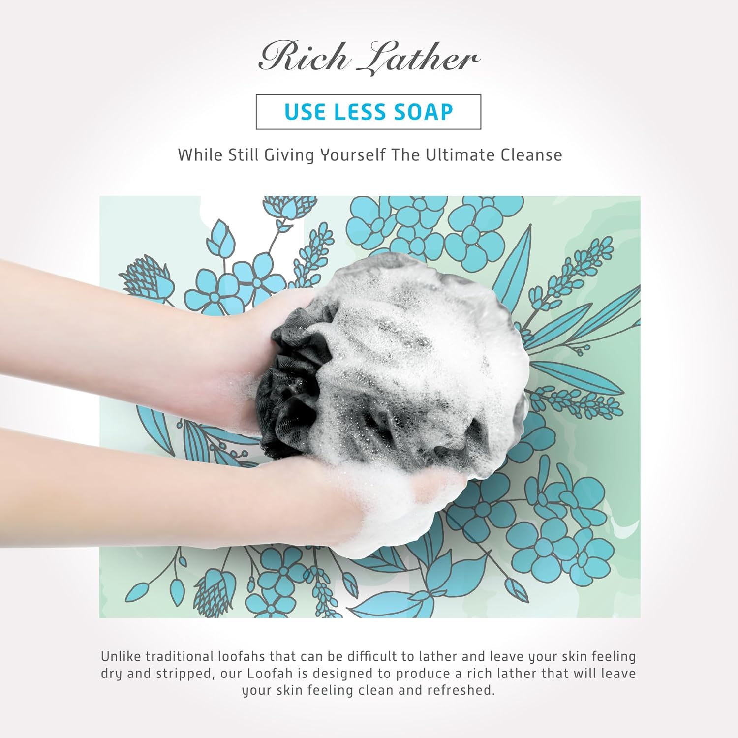 - RICH LATHER - Create a rich, foamy lather when used with your favorite soap or body wash. This loofah helps to whip up a thick and luxurious lather like never experienced before.