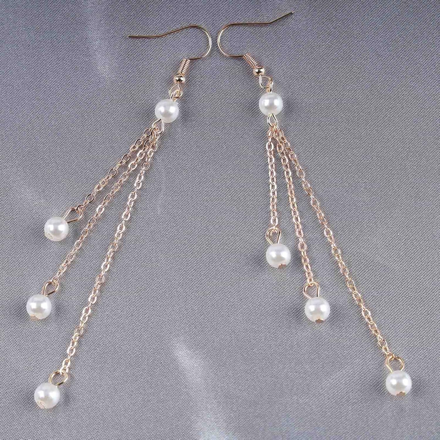 Vintage Pearl Dangle Earrings Gold Pearl Chain Drop Earrings Tiny Pearl Tassel Earrings Long Pearl Bridal Hook Earrings Jewelry for Women