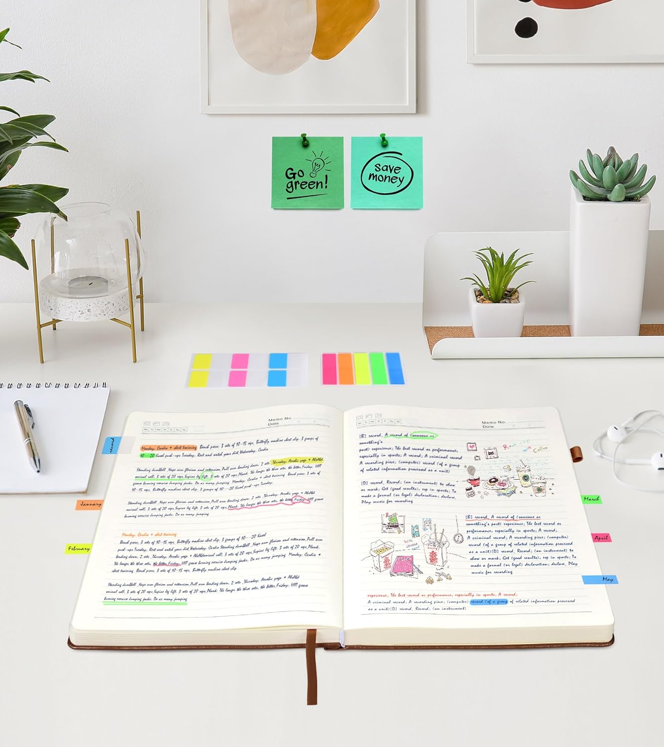 - 【Upgrade Lined Journal Notebook】Comes with 1 elastic closure band & 1 elastic bookmark band, more stable. An expandable inner storage pocket to keep track of appointment cards,notes,receipts,and more. 1 gift of multicolor index tabs stickers for papers classifying and marking.