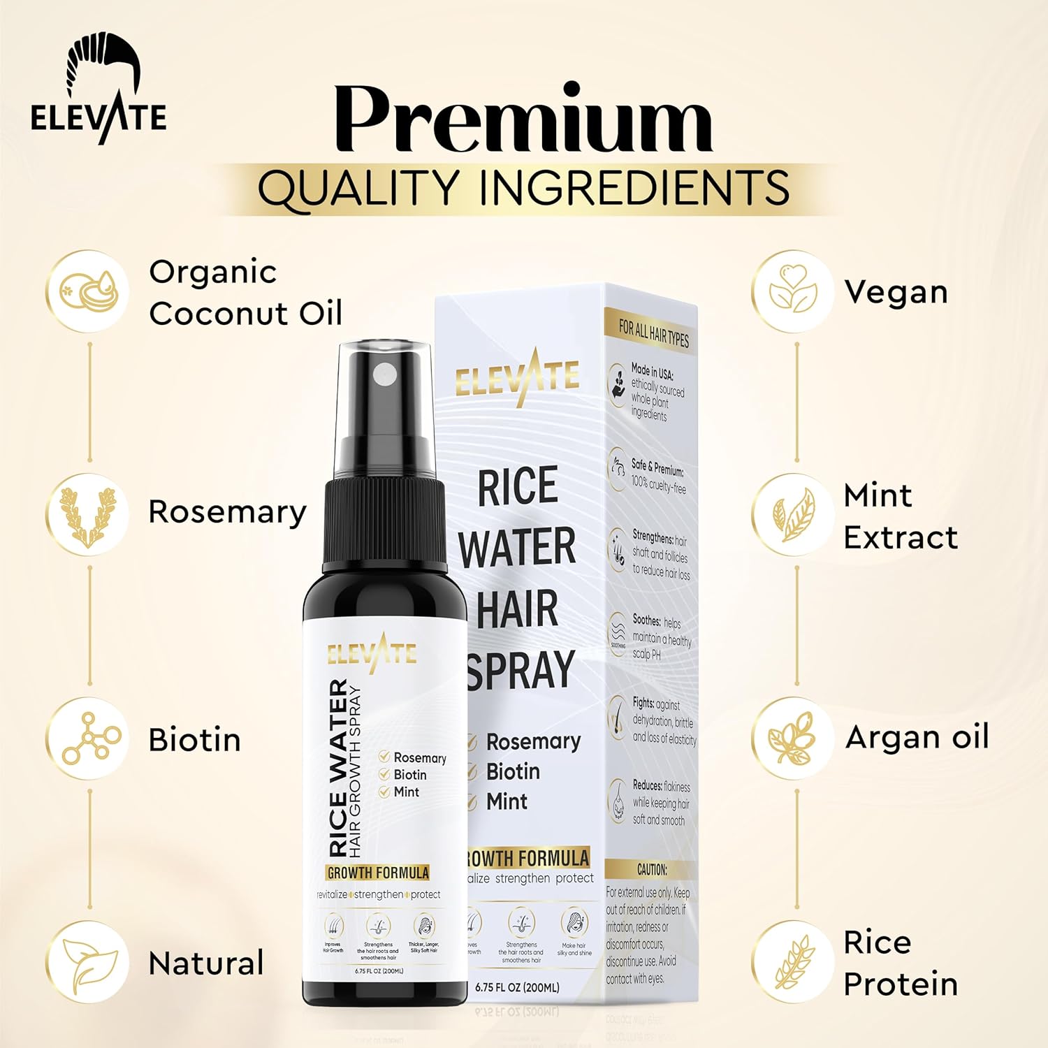 Elevate Rice Water Spray for Hair Growth - Fermented Rice Water & Rosemary Hair Mist with Biotin - Vegan Leave-In Treatment for Stronger, Thicker, Healthier Hair - Scalp Care for Women & Men
