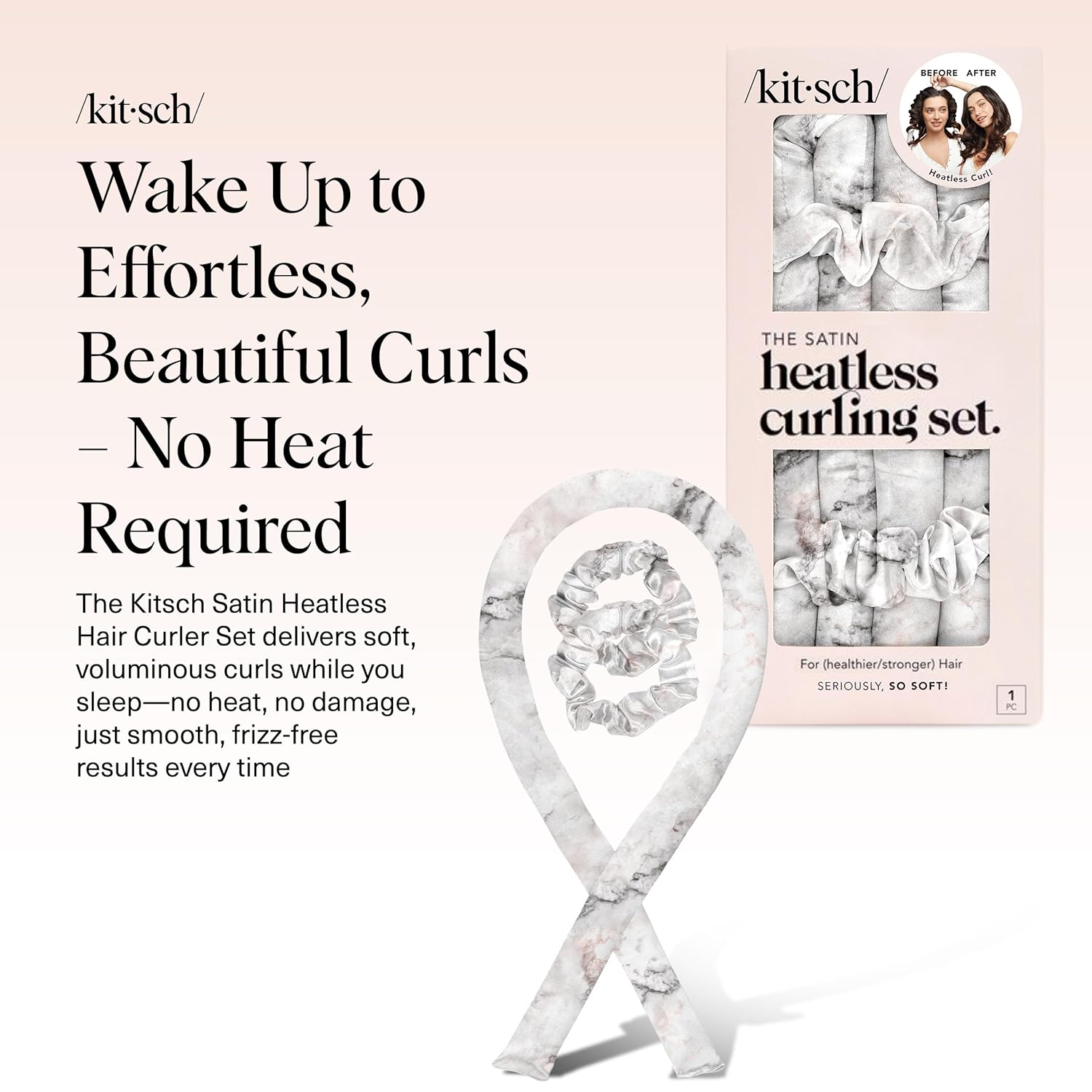 Kitsch Satin Heatless Hair Curler Set - Heatless Curls Overnight, Hair Rollers for Soft Curls & Frizz-Free Styling, No Heat Curlers To Sleep in, Curling Rod Headband with 2 Scrunchies - Marble