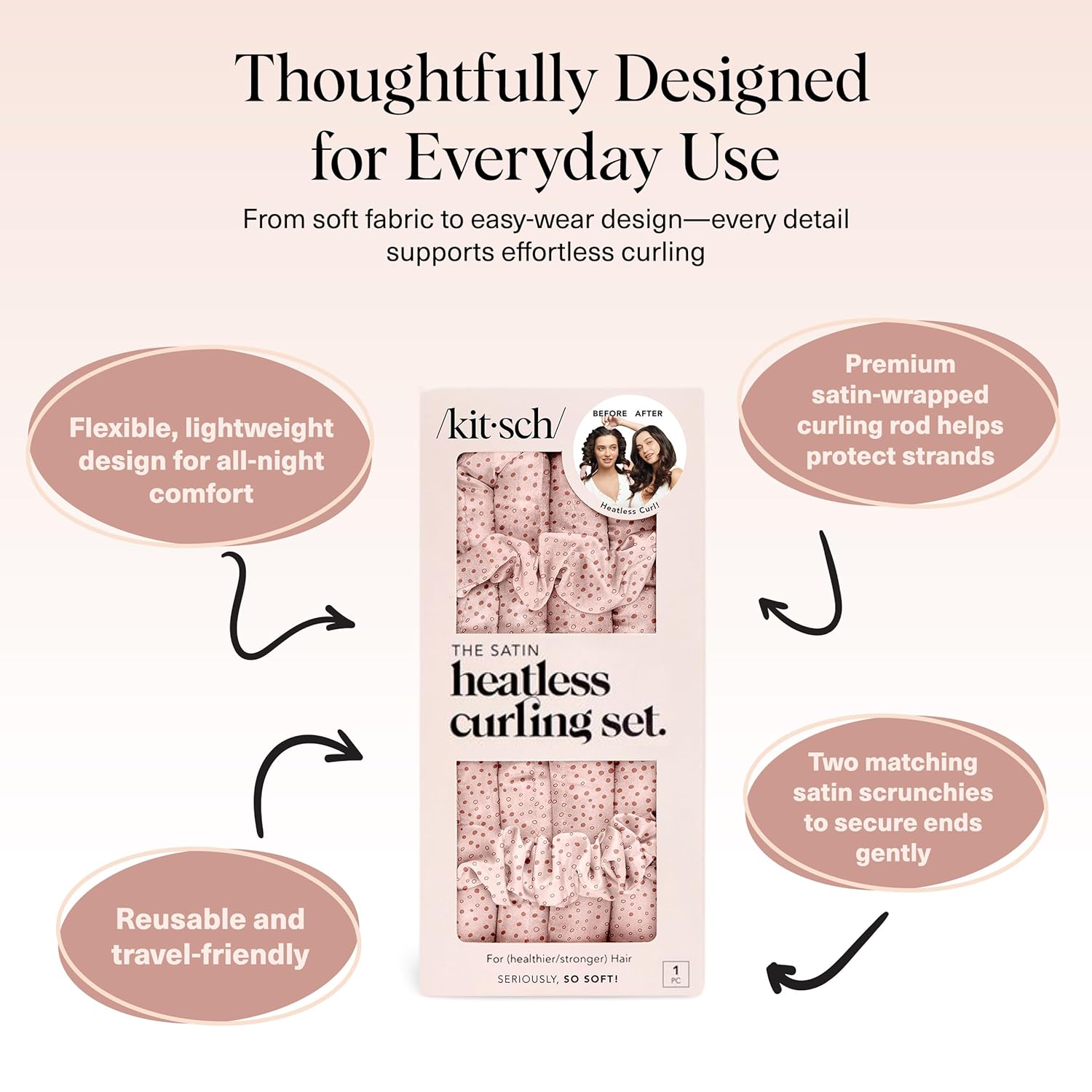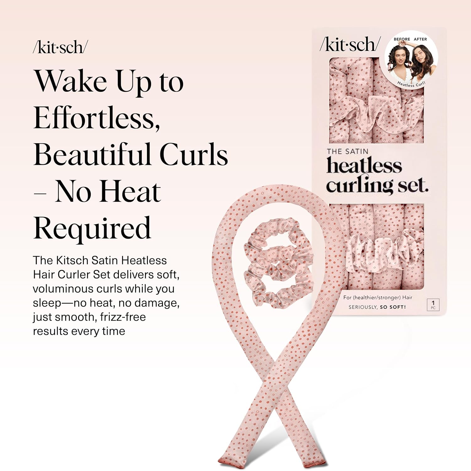 Kitsch Satin Heatless Curling Set – Heatless Hair Curler for Women, Hair Curler to Sleep In - with 2 Satin Scrunchies for Overnight Curls – No Heat Damage Styling with Heatless Curler - Micro Dot