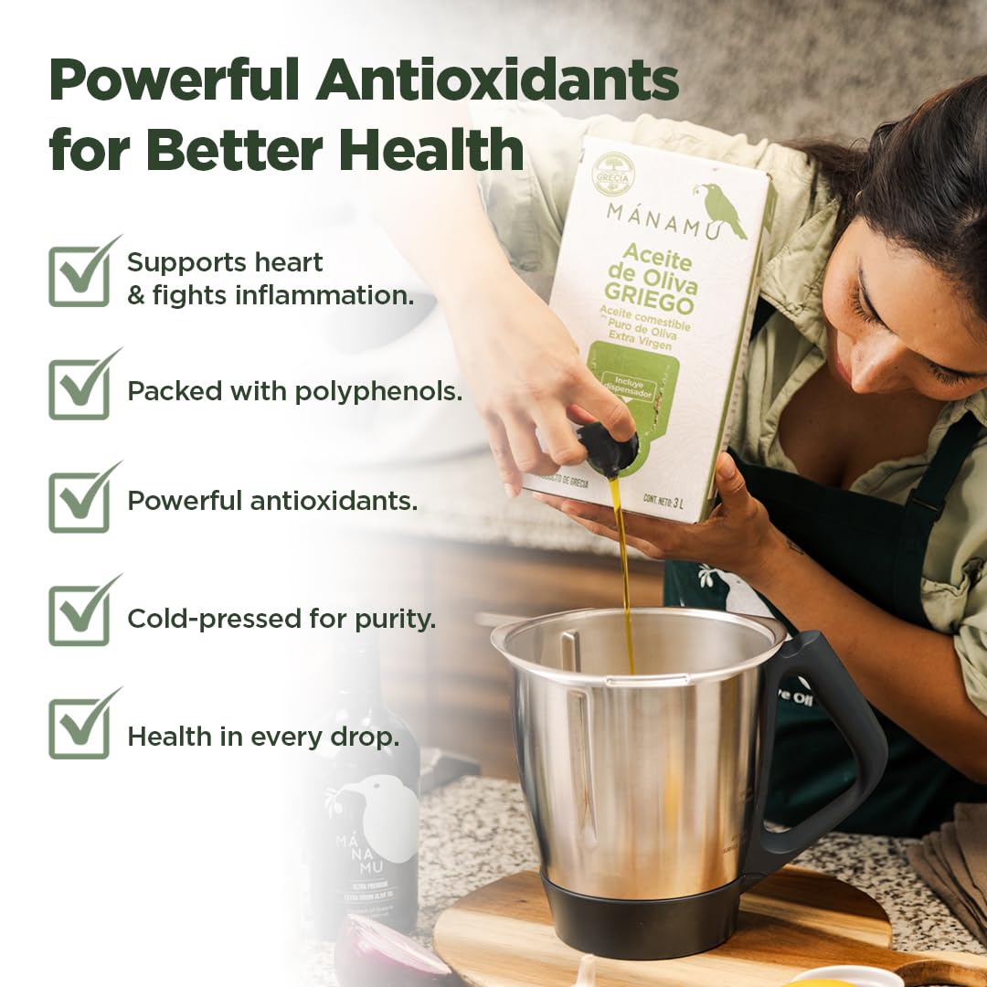 Mánamu Extra Virgin Olive Oil from Greece | Fresh Harvest 24-25 | 100% made with pure GREEK Koroneiki Olives | 100% PURE Cold Pressed | Low Acidity | Ecological Bag-in-Box 101.4 Fl Oz (3 Liter)