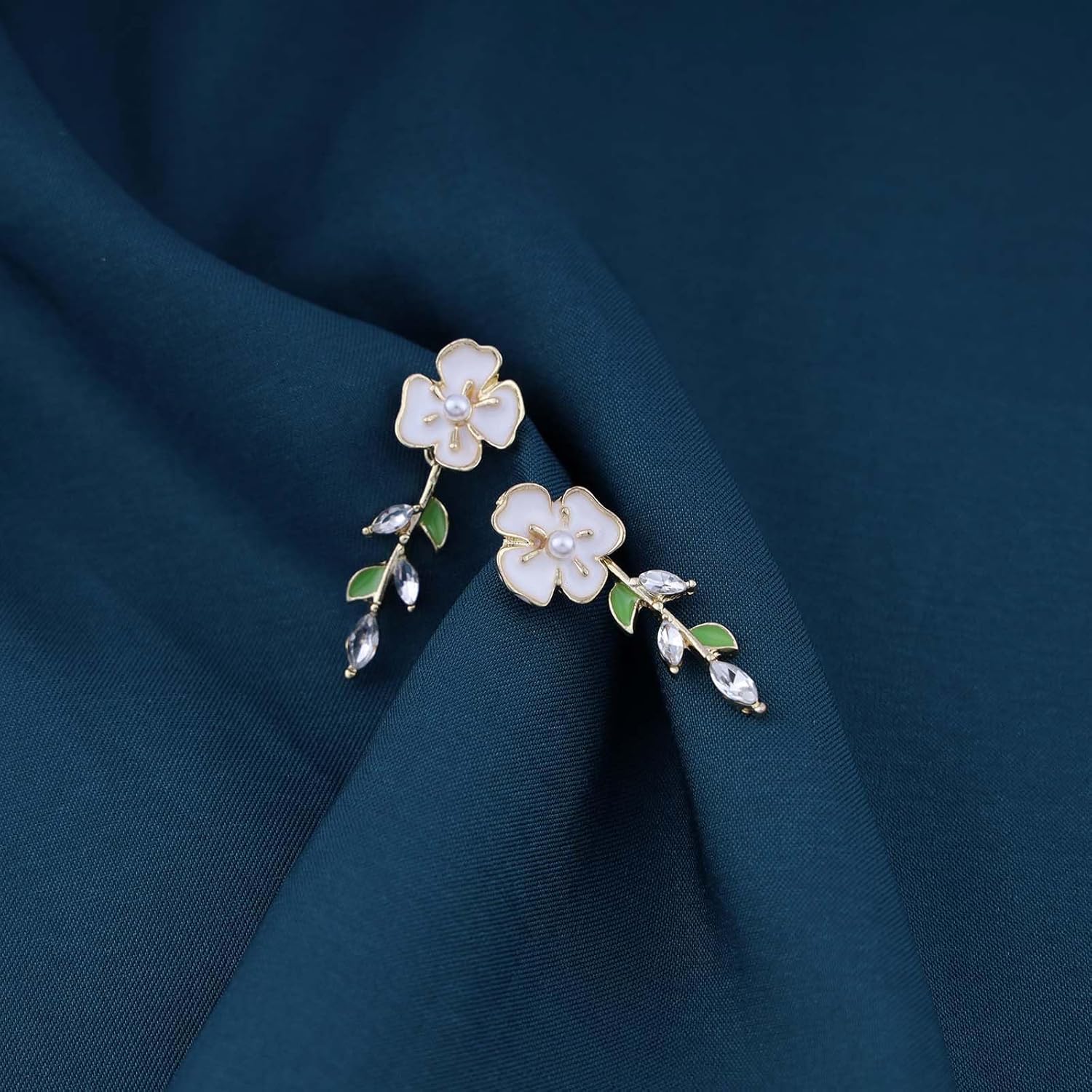Vintage Pearl Flower Earrings Crystal Leaf Drop Earrings Gold Pearl Stud Earrings White Enamel Flower Earrings Jewelry for Women