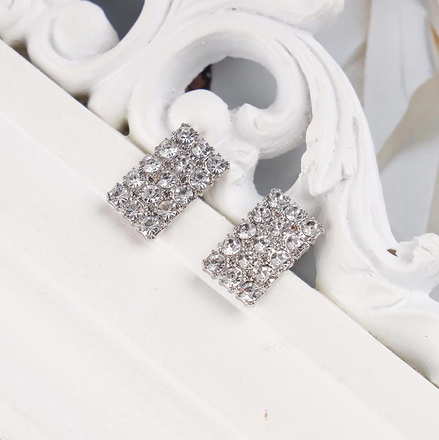Vintage Rhinestone Square Earrings Square Crystal Earrings Silver Geometry Square Stud Earrings Sparkly Cz Bridal Earrings Jewelry for Women