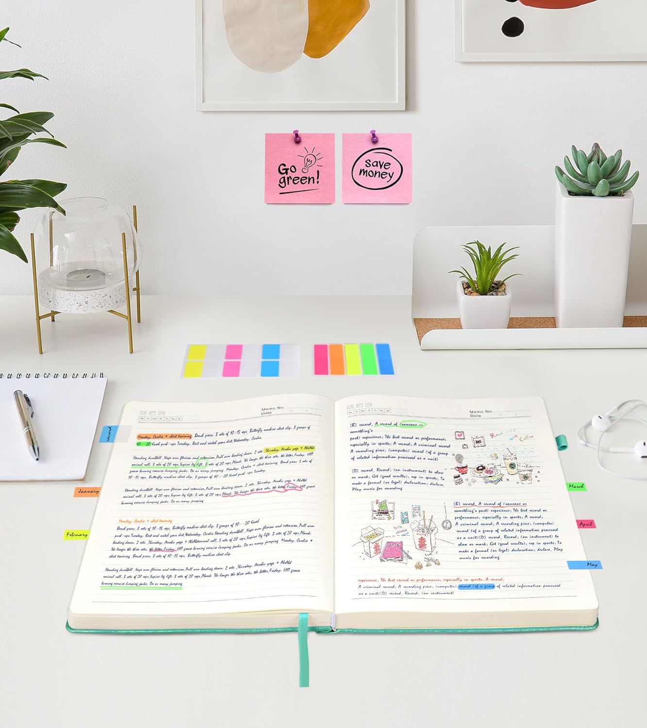 - 【Upgrade Lined Journal Notebook】Comes with 1 elastic closure band & 1 elastic bookmark band, more stable. An expandable inner storage pocket to keep track of appointment cards,notes,receipts,and more. 1 gift of multicolor index tabs stickers for papers classifying and marking.