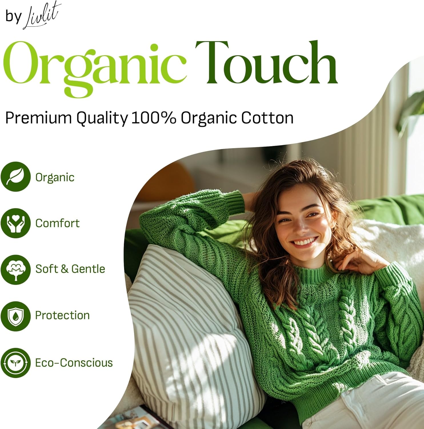 - 100% CERTIFIED ORGANIC COTTON TOP SHEET: Indulge in the luxurious comfort of Livlit's certified organic cotton, designed to be hypoallergenic and irresistibly soft as cashmere. Laboratory-tested and OCS-certified, our pads are free from chlorine, dyes, and fragrance.