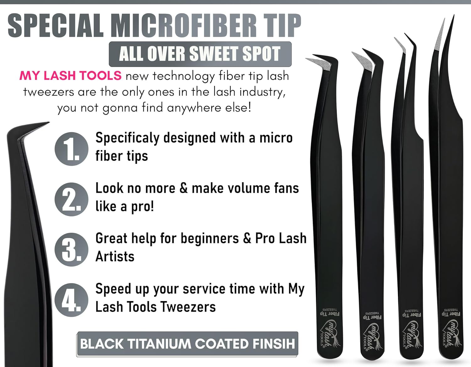 - 🌟 COMFORTABLE TO USE - Perfect for all lash artists—beginners to pros. Lightweight, durable, and precise. Ideal for volume lashes, with a complete grip and all over sweet spot. Fiber tip tweezers are easy to carry packed in case. Your ultimate lash tech must-haves! Prefect for isolation & mega volume.