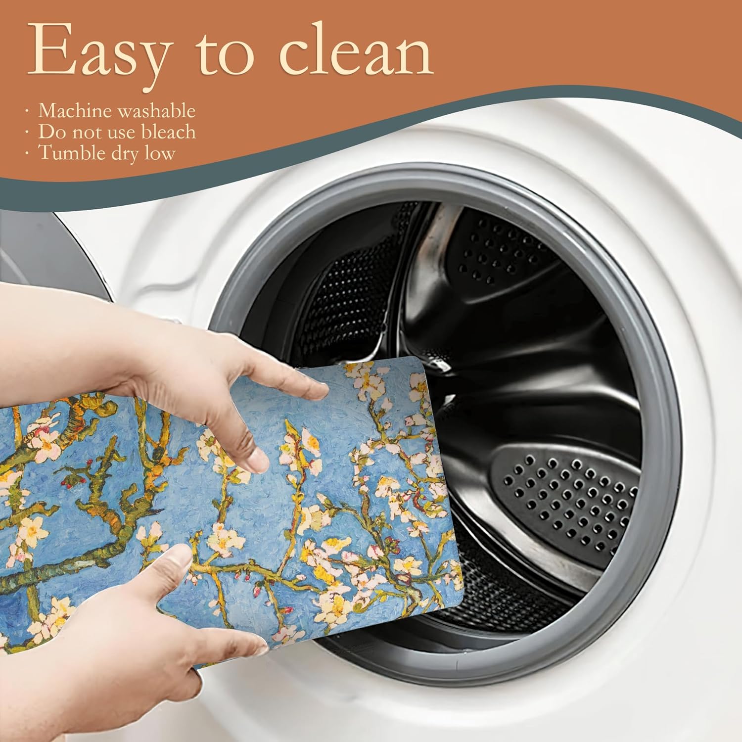 Almond Blossom Tree Dish Drying Mat for Kitchen Counter Decor,Flower Dish Drying Rack Pad Absorbent Reversible Microfiber for Coffee Tableware Sink Countertop 18x24 Inch