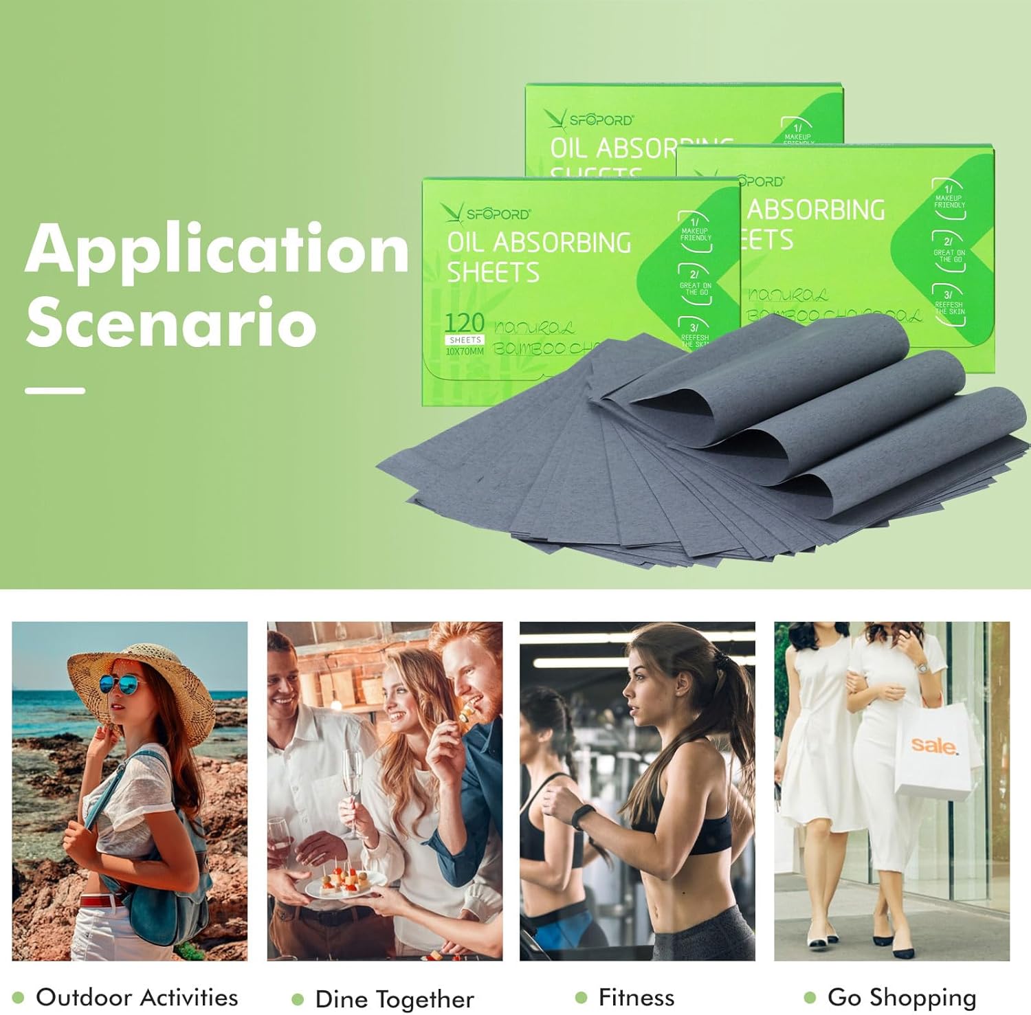 Oil Absorbing Sheets with Bamboo Charcoal - 4 Pack (480 sheets) Oil Blotting Sheets For Face, 20% More Makeup Friendly High-performance Handy Face Blotting Paper for Oily Skin