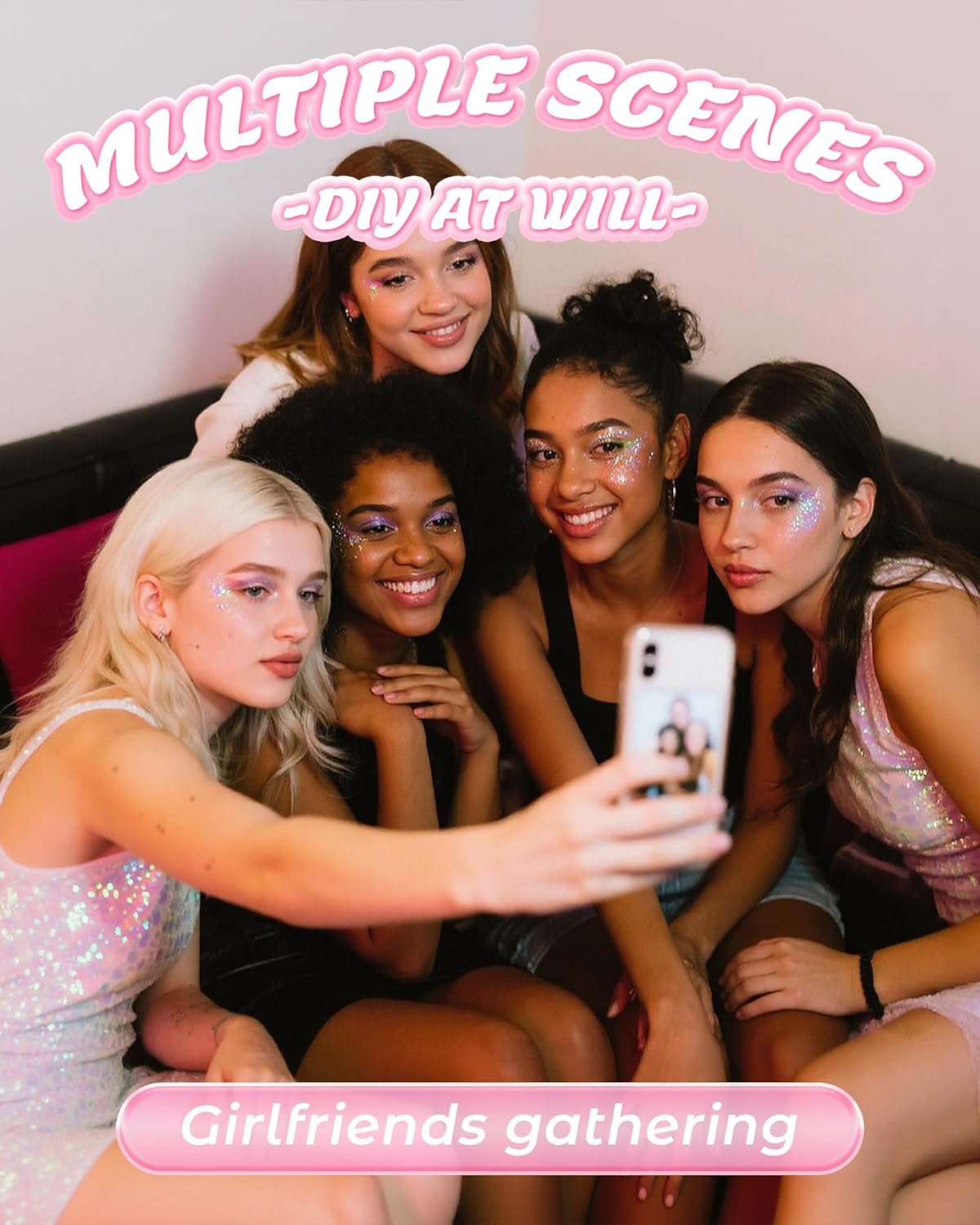 - VERSATILE ALL-OVER GLAM: From face body and decolletage to hair and nails, this glitter works everywhere. Wear it as eyeshadow, highlight your collarbones, or add sparkle to your hairstyle—it’s your go-to accessory for creating show-stopping looks from head to toe