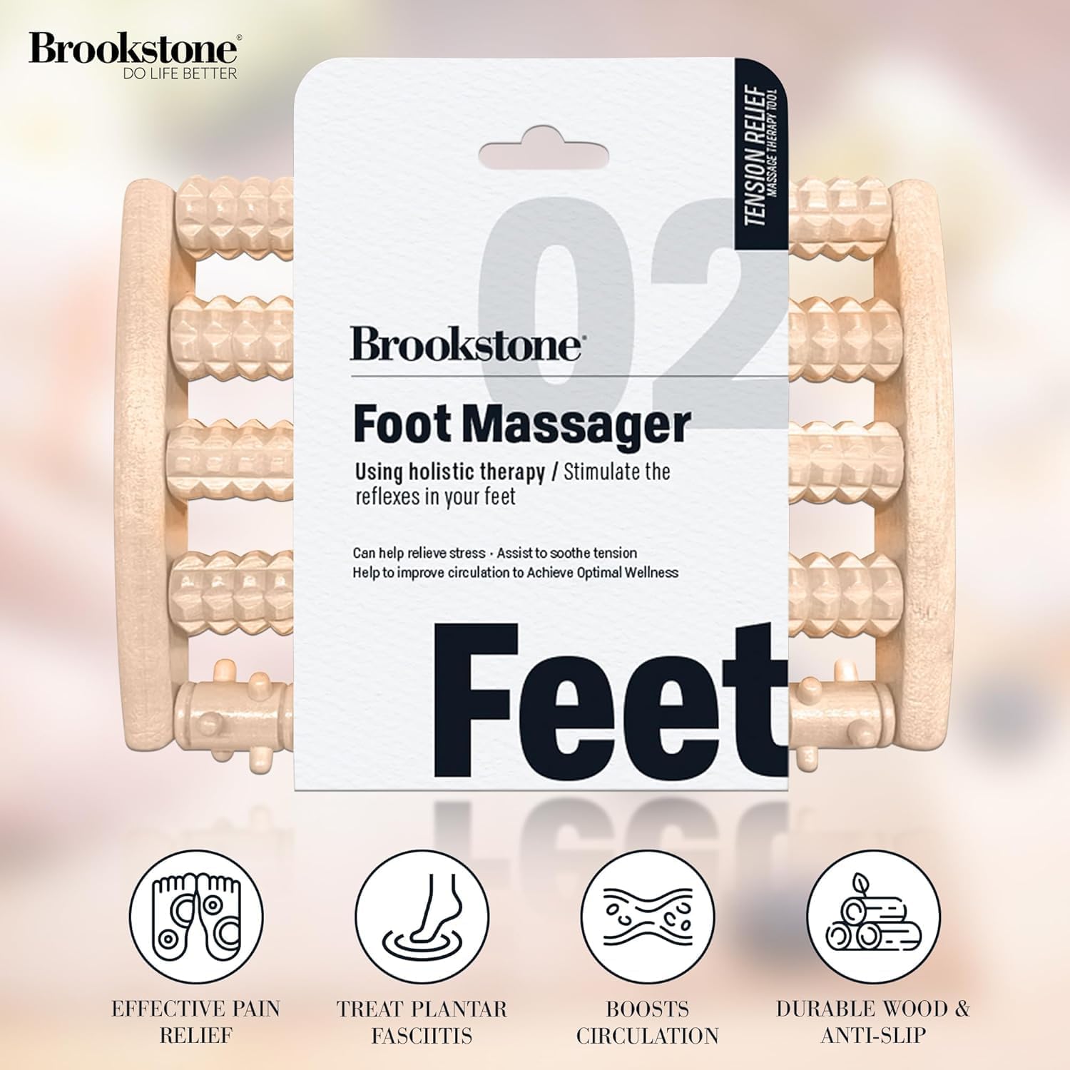 Brookstone Wooden Foot Roller Massager - Deep Tissue Reflexology & Trigger Point Therapy for Plantar Fasciitis, Arch & Heel Pain Relief - Portable Manual Massager, Ideal Gift for Home or Travel