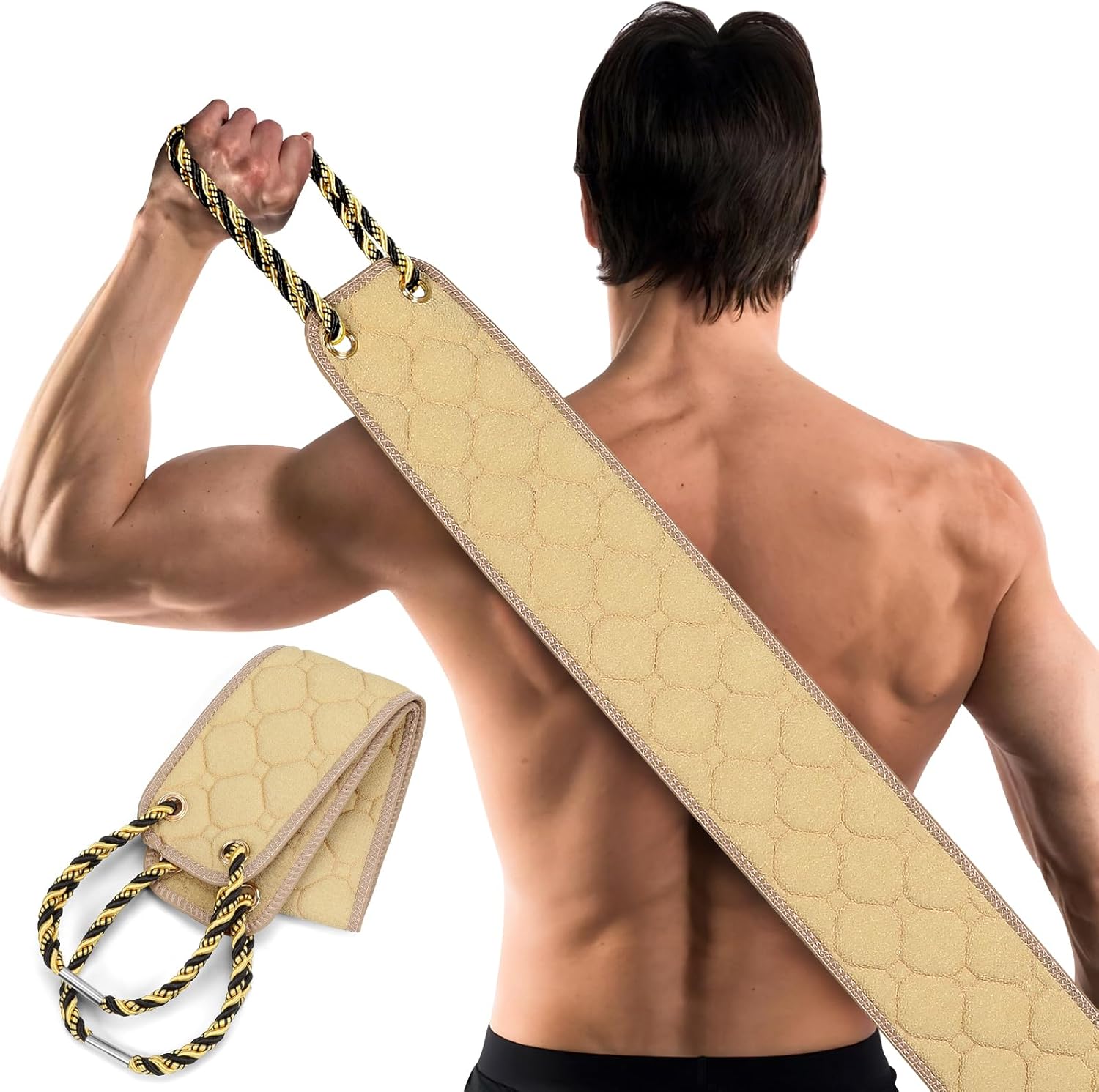 Exfoliating Back Scrubber with Handles, 38.5 Inch Double-Sided Back Exfoliator Body Scrub Towel, Exfoliating Washcloth Bath Tool for Use in Shower, Back Washer to Deep Clean Your Skin for Men & Women