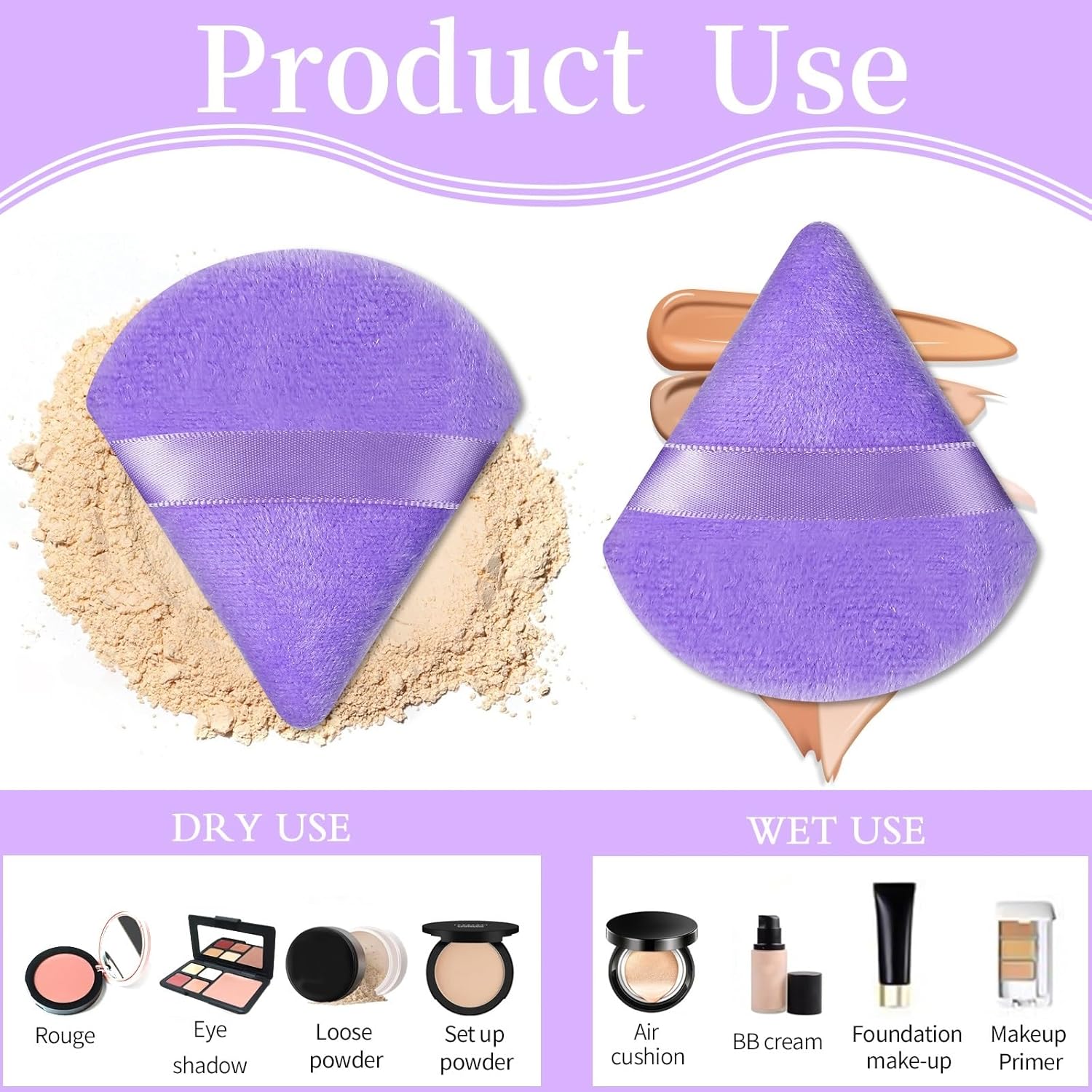 - Design for Flawless Makeup: Our powder puff features a unique triangle and circle design. The round side is perfect for applying foundation on your cheeks and forehead, while the triangle side is ideal for application on the eyes and contour.