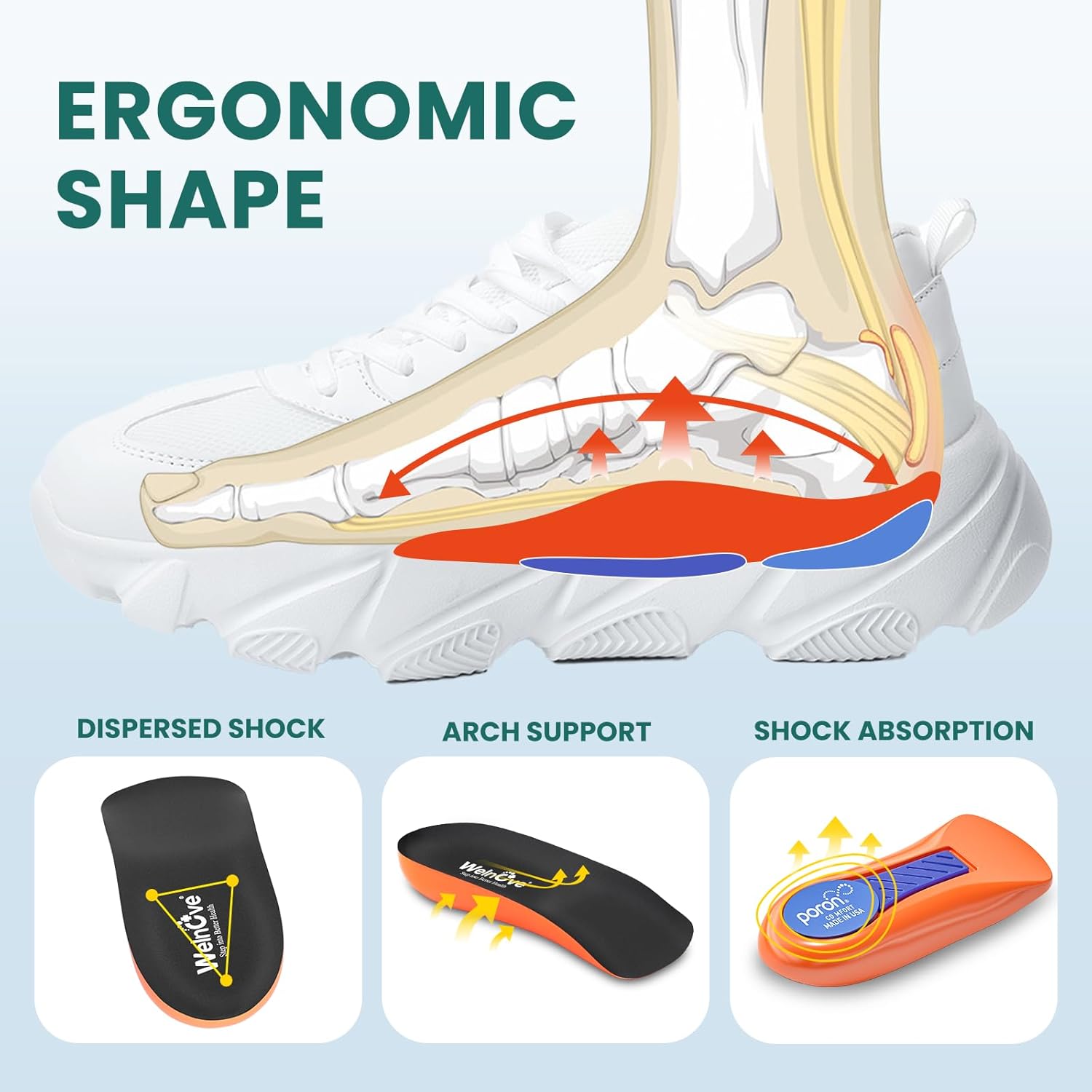 Plantar Fasciitis Heel Support Inserts - Welnove Premium Arch Support Heel Cushion Cups for Heel Pain Heels Spur Achilles Tendonitis - Orthotic Shoe Insert for Women's 6-9, Men's 5-8 (1 Pair)