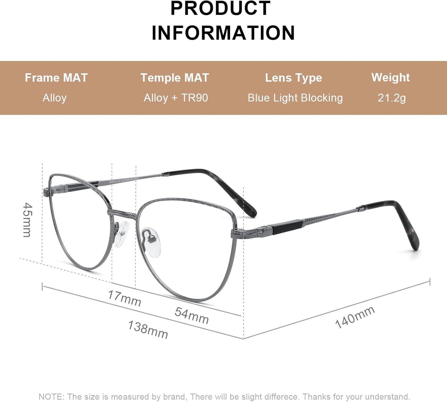 - 【PRODUCT SIZE】- Lens Width: 54mm(2.13inches) | Lens Height: 45mm(1.77inches) | Nose Bridge: 17mm(0.67inches) | Temple Length: 140mm(5.51inches).